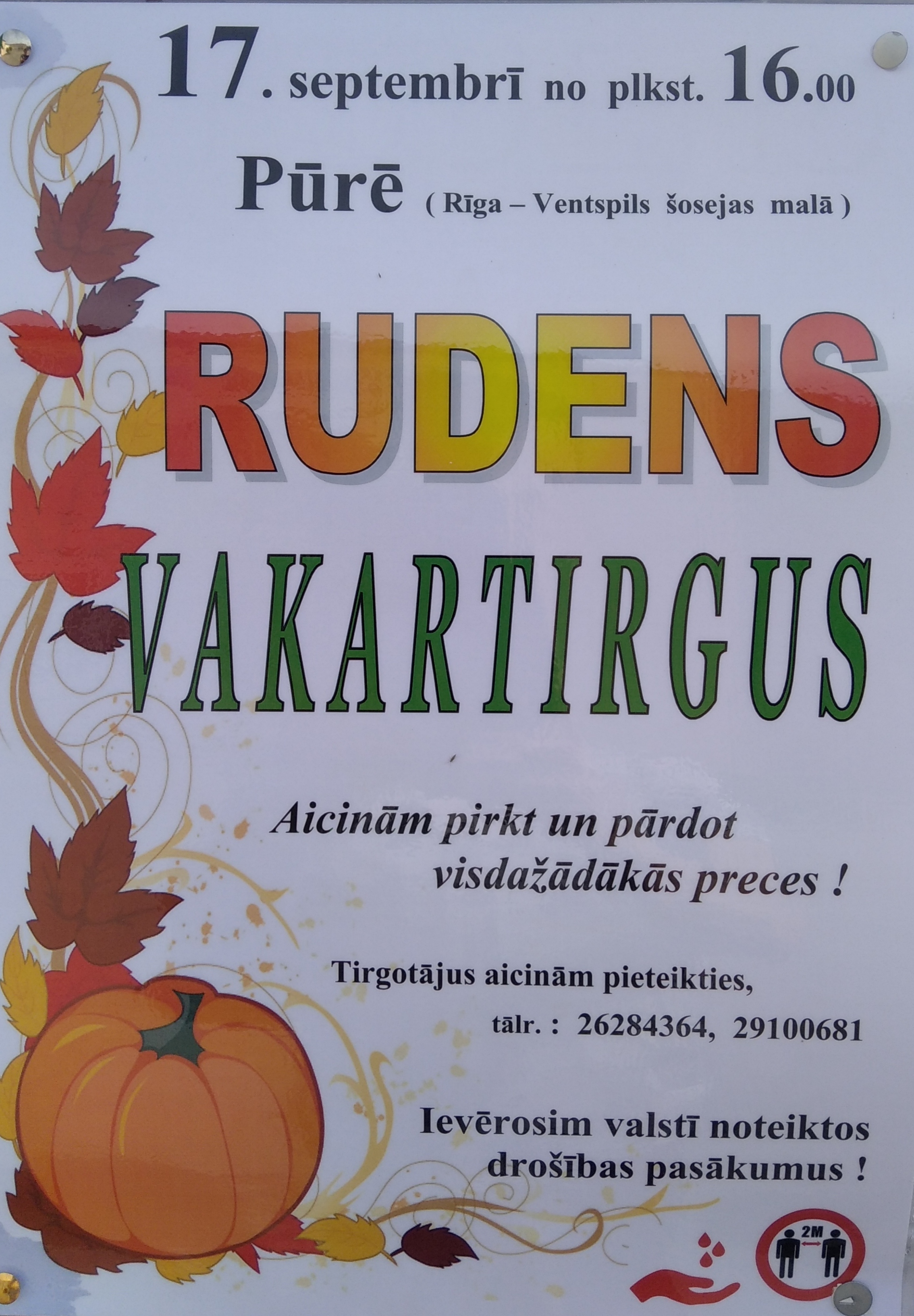 17.09.2020. no plkst. 16:00 Pūrē (Rīga - Ventspils šosejas malā) Rudens vakartirgus!