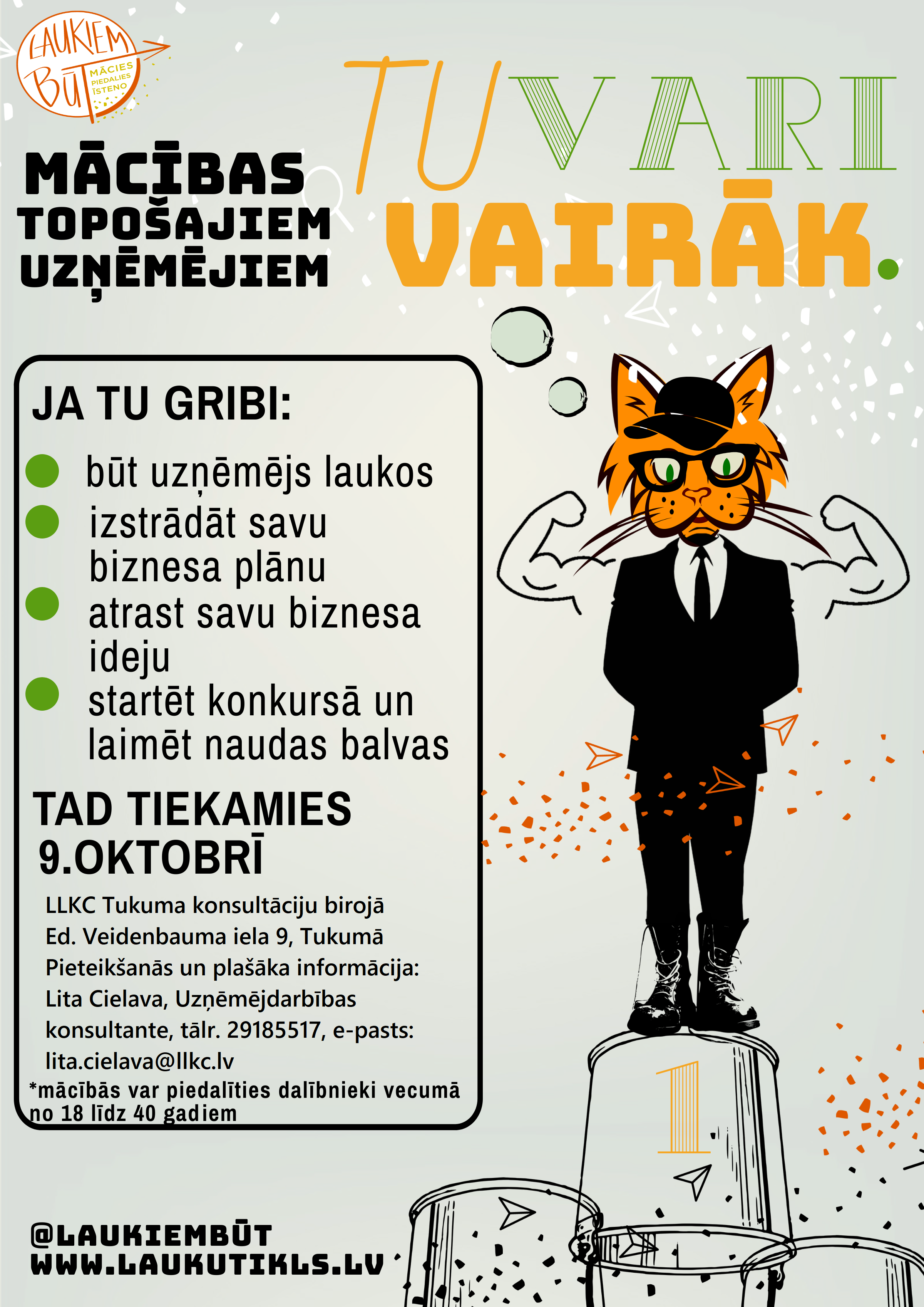 Tukuma konsultāciju birojs organizē mācības topošajiem uzņēmējiem "Tu vari vairāk!"