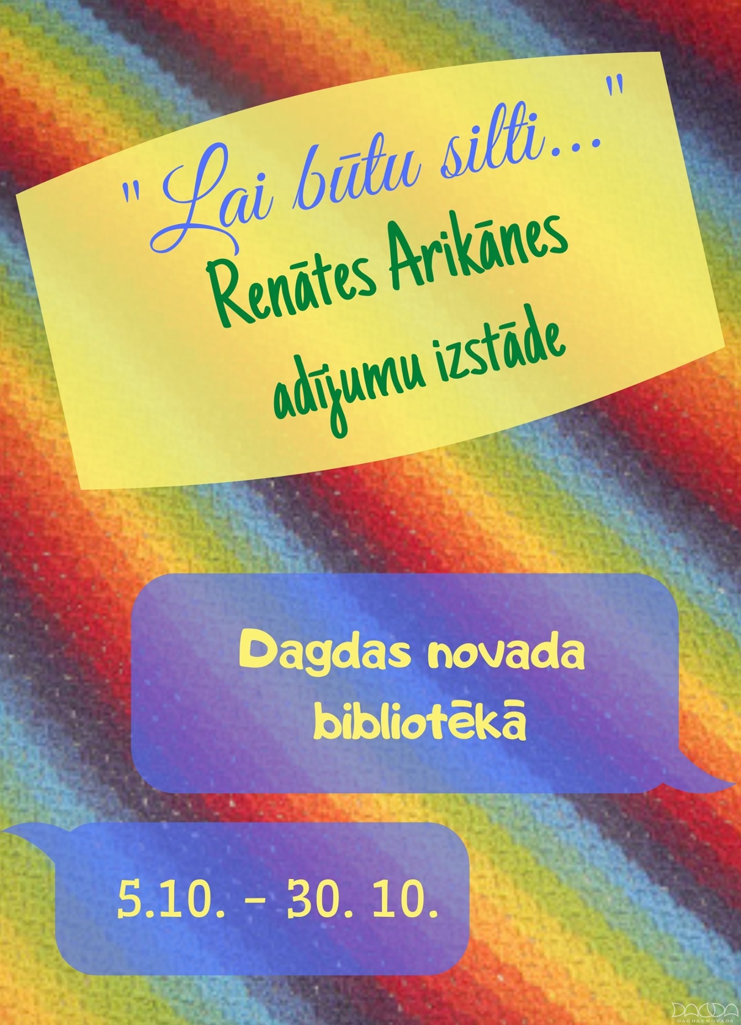 No 05.10.2020. līdz 30.10.2020. Dagdas novada bibliotēkā būs skatāma Renātes Arikānes adījumu izstāde "Lai būtu silti..."