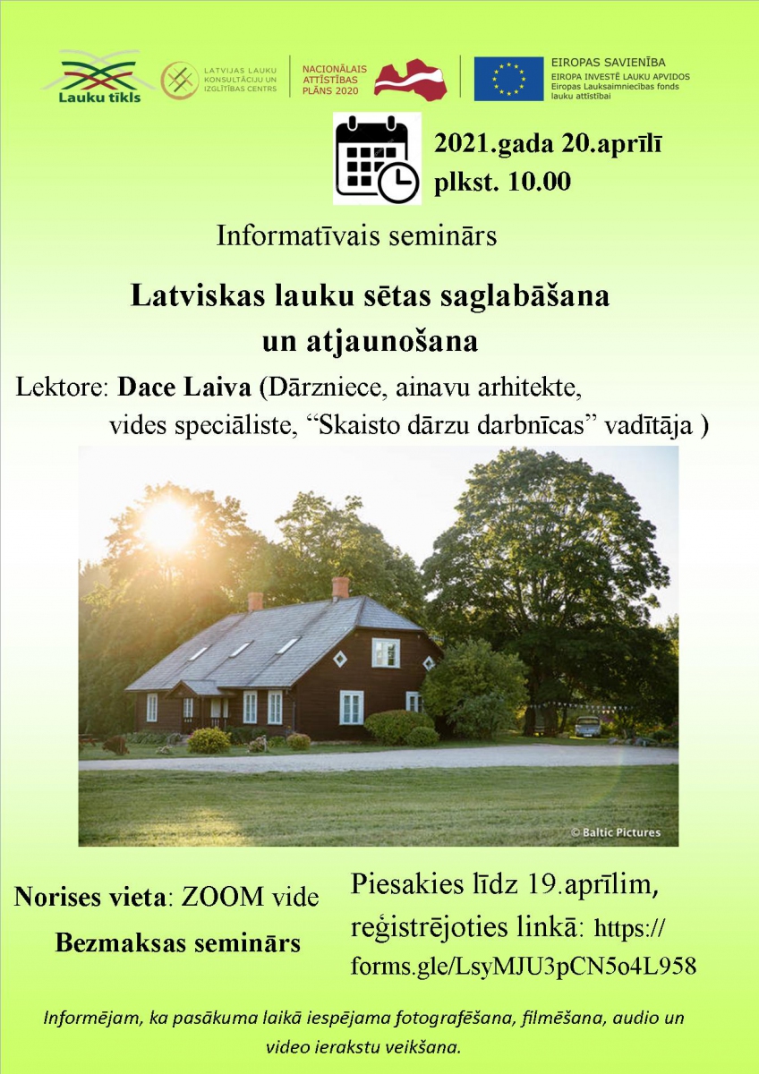 Šī gada 20.aprīlī SIA LLKC Ludzas nodaļa organizē bezmaksas informatīvo semināru "Latvijas lauku sētas saglabāšana un atjaunošana".