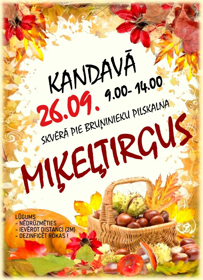 26.09.2021. Kandavā, skvērā pie Bruņinieku pilskalna no 09:00 līdz 14:00 notiks tradicionālais Miķeļdienas tirgus!