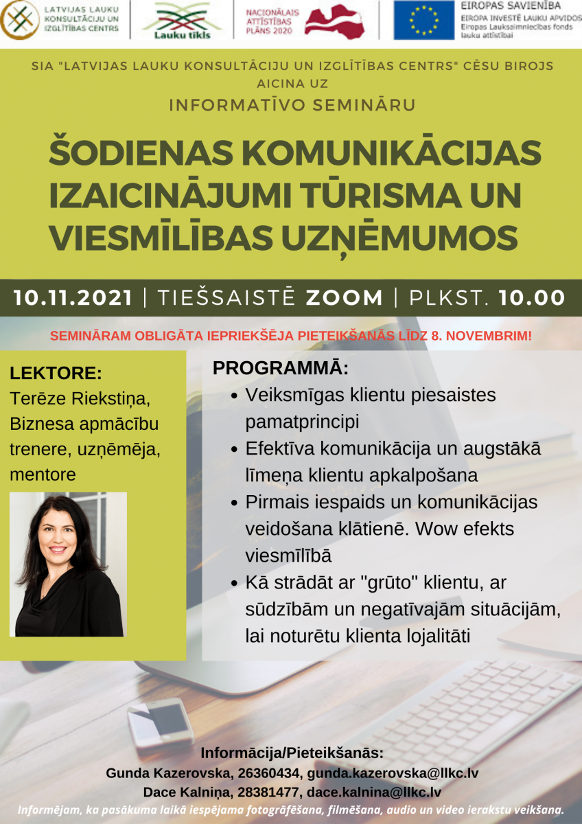LLKC Cēsu konsultāciju birojs aicina uz informatīvo semināru "Šodienas komunikācijas izaicinājumi tūrisma un viesmīlības uzņēmumos".