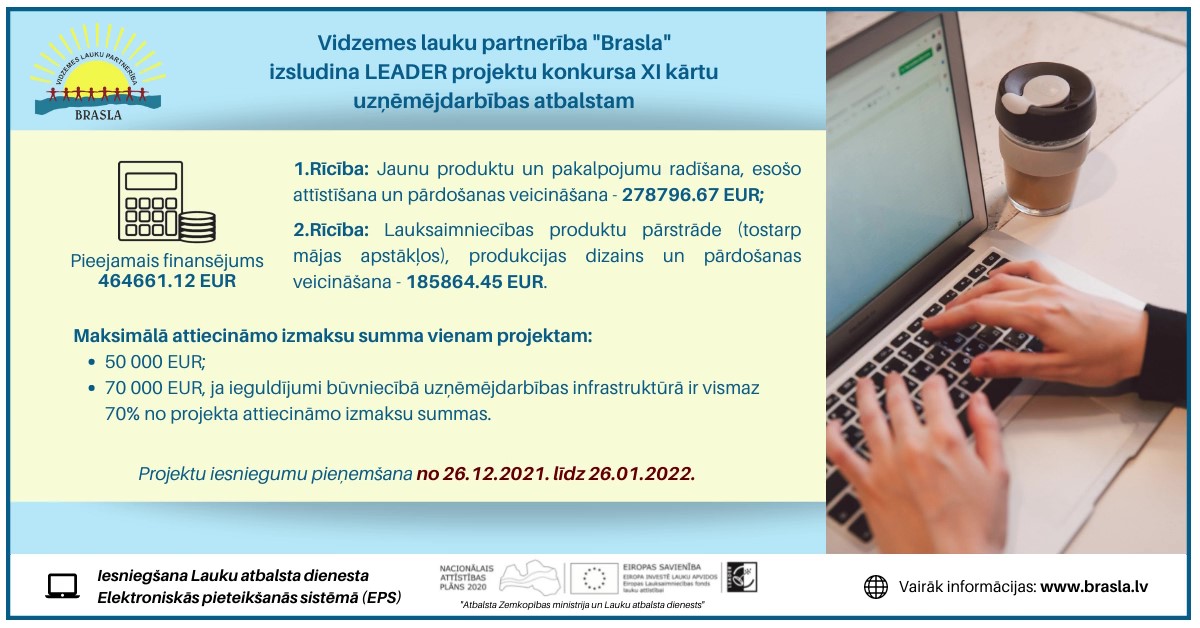 Informācija par projektu iesniegšanu: https://brasla.lv/blog/post/izsludinata-leader-projektu-konkursa-xi-kart...