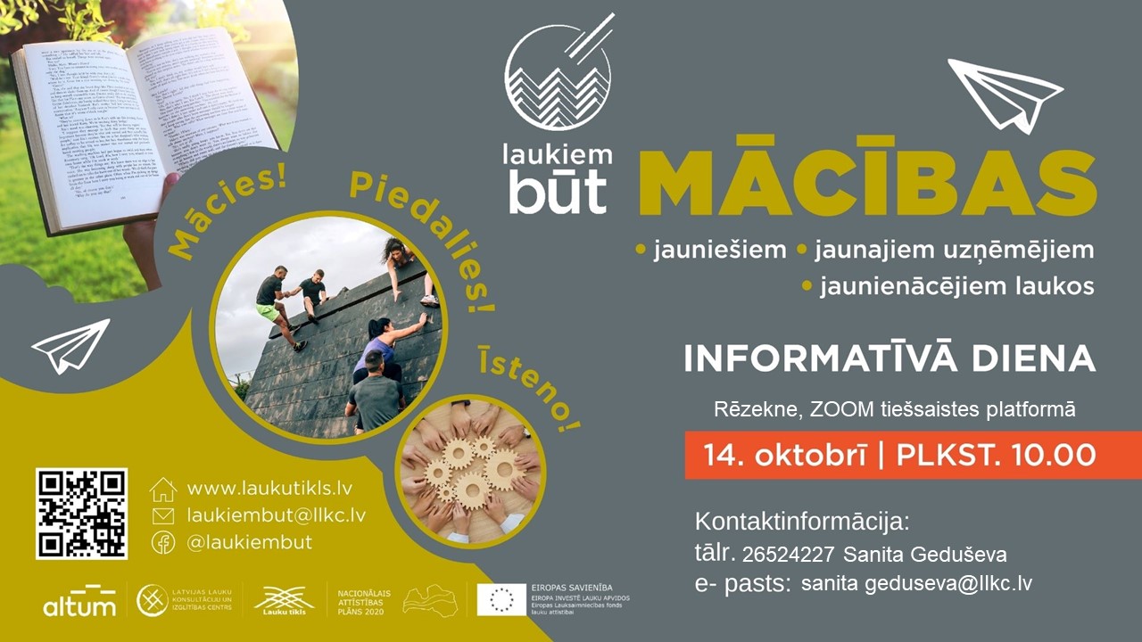 14.oktobrī plkst.10.00. Zoom tiešsaistes platformā notiks pasākuma "Laukiem būt!" informatīvā diena!