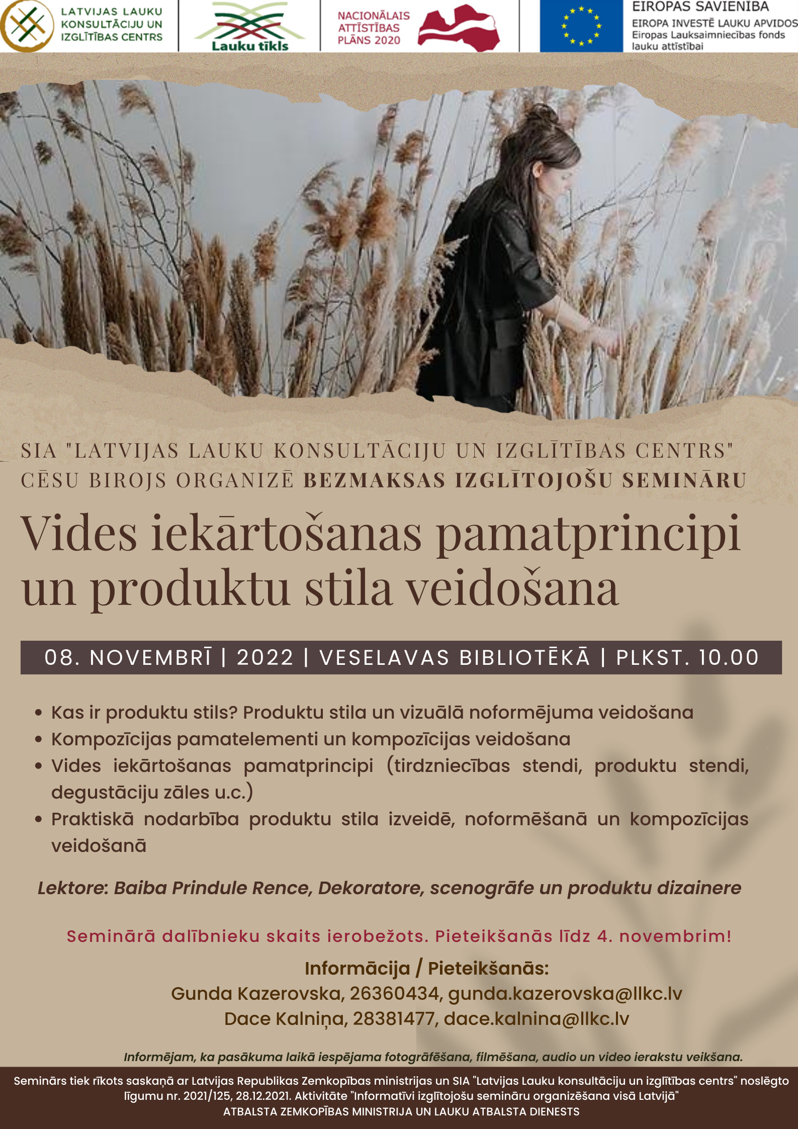 08.11.2022 | Cēsis | Izglītojošs seminārs "Vides iekārtošanas pamatprincipi un produktu stila veidošana"
