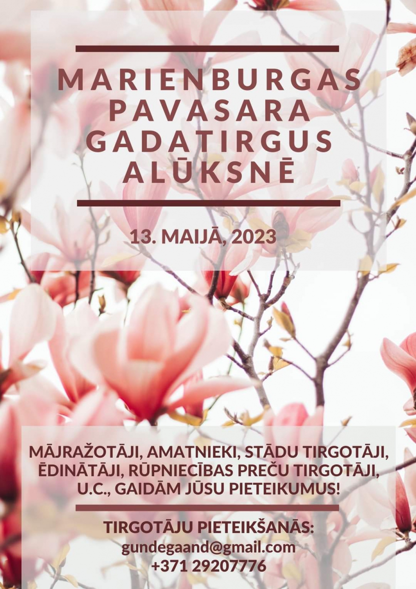 Alūksnē 13.maijā tiek organizēts Pavasara gadatirgus. Laipni aicināti pirkt un pārdot gribētāji.