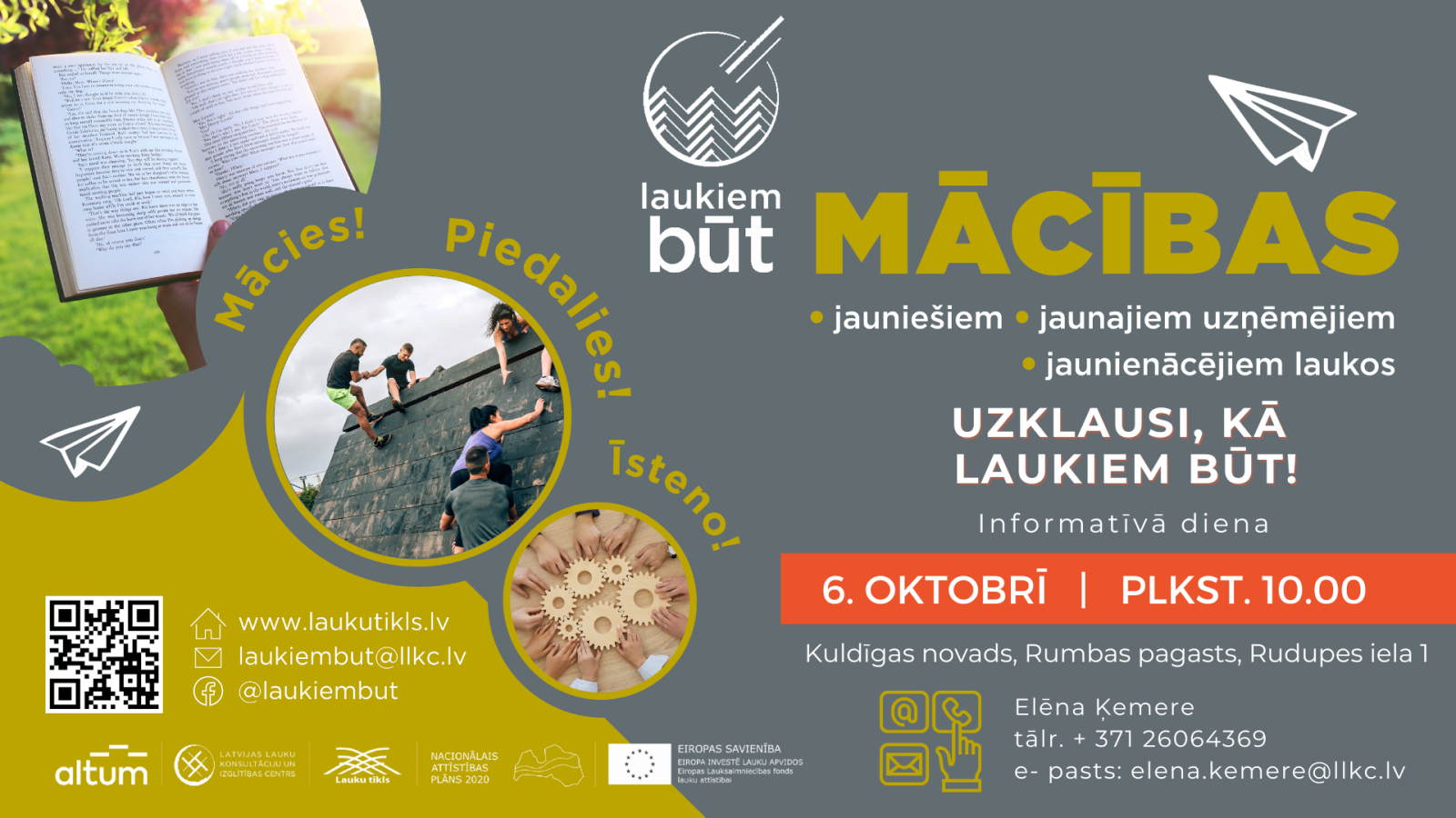 Ar informatīvo dienu visos Latvijas reģionos sāksies jau 12. “Laukiem būt!” sezona, ko Latvijas Lauku konsultāciju un izglītības centrs (LLKC) īsteno aktivitātes “Atbalsts uzņēmējdarbības veicināšanai lauku teritorijās” ietvaros.