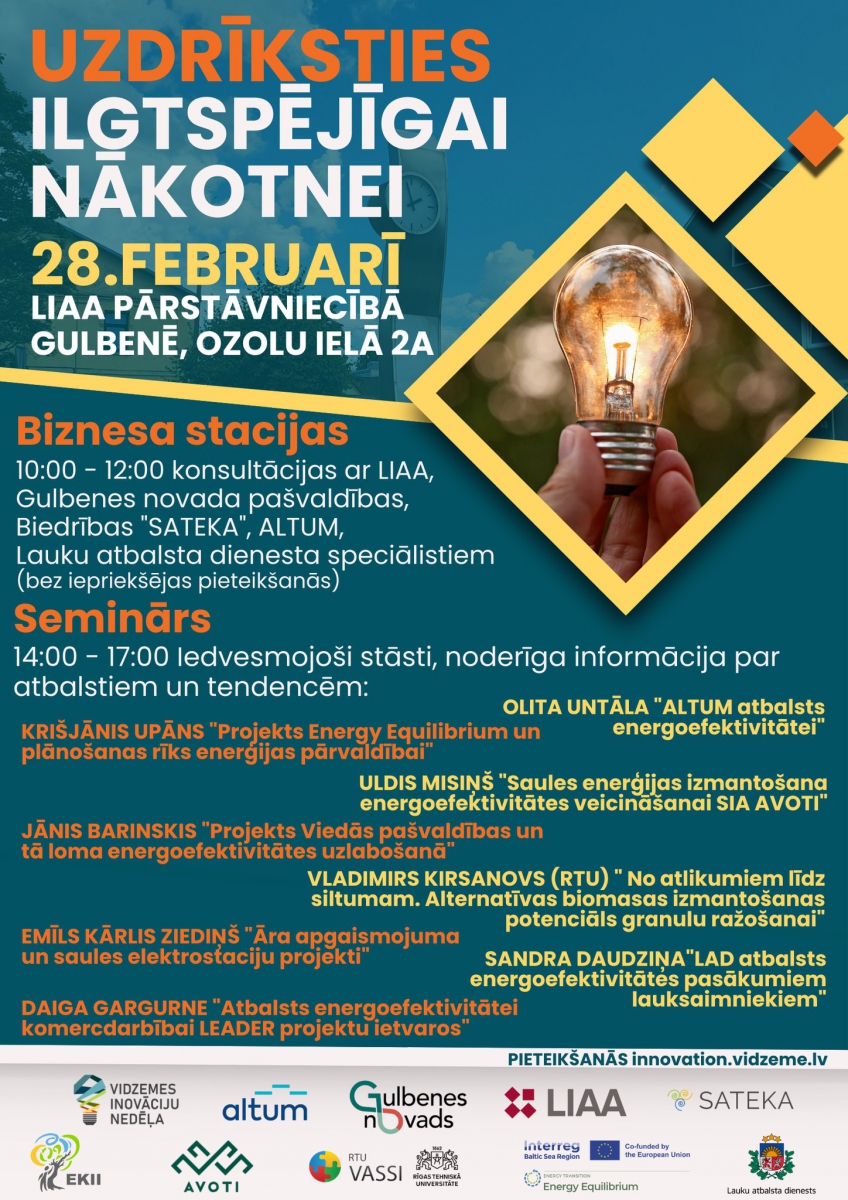 LIAA pārstāvniecībā Gulbenē aicināti pieteikties uzņēmēji no Gulbenes pilsētas un novada, lai attīstītu savu uzņēmējdarbību. Plašāk par programmu uzzināt un saņemt atbildes uz sev interesējošiem jautājumiem būs iespējams pasākumā “Biznesa stacijas” piektdien, 28. februārī, no pulksten 10:00 līdz 12:00 LIAA pārstāvniecībā Gulbenē, Ozolu ielā 2A, kā arī rakstot uz e-pastu “gulbene@liaa.gov.lv” vai zvanot uz tālruni 28391981.