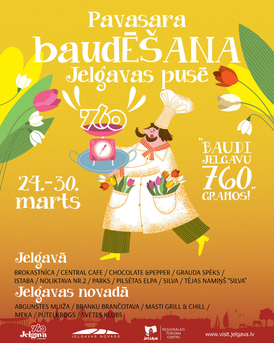Datums: 24. Marts, 2025 līdz 30. Marts, 2025Reģions: ZemgaleVieta: Jelgavas un Jelgavas novada kafejnīcas un restorāniNozare: UzņēmējdarbībaKontaktinformācija: Jelgavas reģionālais tūrisma centrsReģions filtram: Jelgava