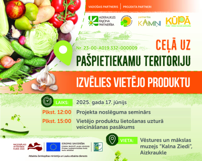 Pētījums un pārējās projekta aktivitātes tiks prezentētas noslēguma pasākumā 17. jūnijā pulksten 12.00 Vēstures un mākslas muzejā “Kalna Ziedos”. Pēc noslēguma semināra visi tiek aicināti uz meistarklasi, kur šefpavāra vadībā tiks gatavoti un degustēti dažādi ēdieni, kas pagatavoti no vietējiem produktiem.