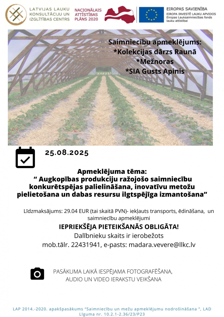 Saimniecību apmeklējums-Apmeklējuma tēma: Augkopības produkciju ražojošo saimniecību konkurētspējas palielināšana, inovatīvu metožu pielietošana un dabas resursu ilgtspējīga izmantošana