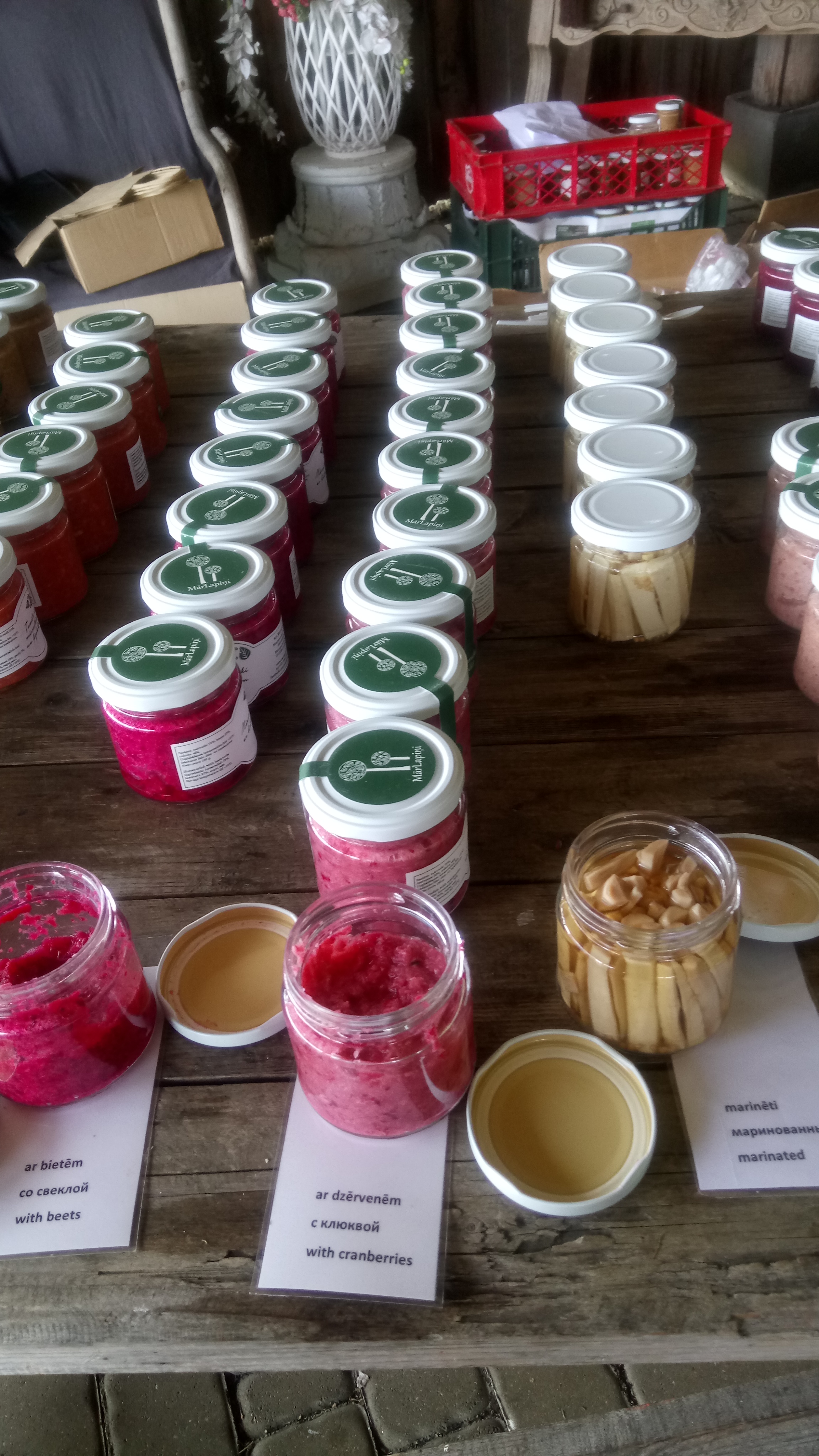 SIA “Mārlapiņi” saviem pircējiem piedāvā plašu produkcijas klāstu. Pamatā mārrutki tiek gatavoti, tiem pievienojot cukuru, sāli un ūdeni. Ir parasti mārrutki bez piedevām, kā arī mārrutki ar dažādām piedevām (ar upenēm un sinepēm, ar ingveru un citronu,  ar bietēm, avenēm, smiltsērkšķiem, tomātiem un ķiplokiem u. c.), mārrutku pulveris, mērces, marinādes gaļai un citi produkti. Šopavasar “top” produkts bija “MārLapiņi Bomba”, ko saaukstēšanās/gripas gadījumā var lietot vai katru dienu, lai stiprinātu veselību un imunitāti – dabīgā ābolu etiķī noturētas 9 veselīgas piedevas. Uzņēmums sadarbojas ar vietējiem veikaliem. Uzzinājām, ka mārrutkus ar avenēm vai mārrutkus ar ingveru var likt pie tējām, ka mārrutku pulveris ir kā vasabi, vai, ka pie suši vislabāk iederas tīrs mārrutks. Uzņēmums savu produkciju realizē aptuveni 10 veikalos, no kuriem lielākā daļa atrodas Rīgā. Mārrutki tiek arī eksportēti uz dažādām valstīm. Produktus iespējams iegādāties veicot pasūtījumus internetā, t. 26411511. Piegādes tiek veiktas, izmantojot pakomātus.