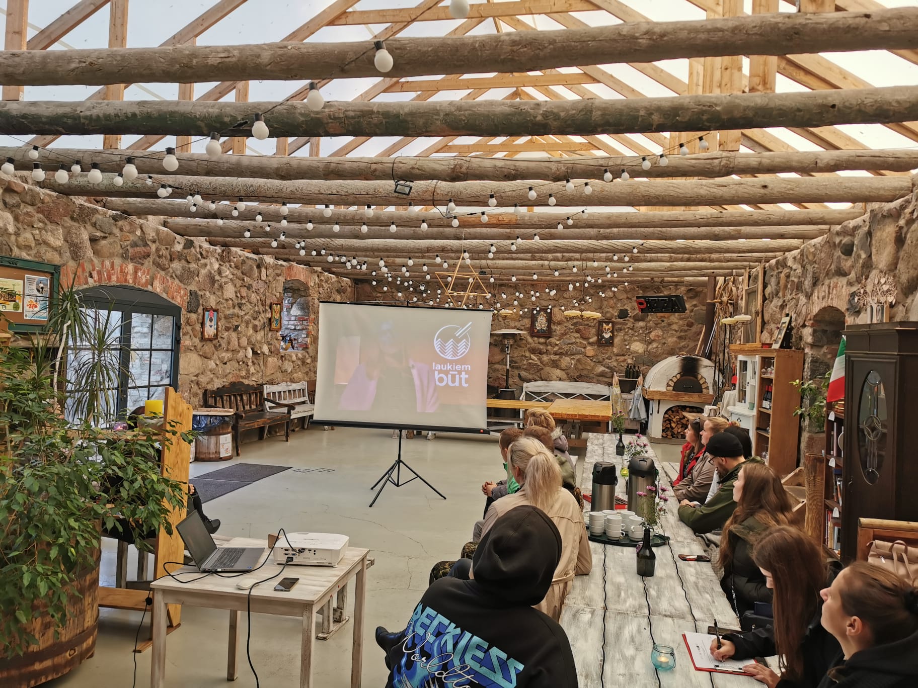 Valmieras un Valkas biroji rīkoja mācības “Laukiem būt!” Mācības tika uzsāktas oktobra sākumā ar informatīvo dienu Valmieras novada Kauguru pagasta “Vīnkalnos“ pie darbīgās un viesmīlīgās Žentiņu ģimenes. Jaunieši tika iepazīstināti ar pieredzi par to, kā būt uzņēmējam lauku vidē, kā attīstīt ideju un veidot piedāvājumu. Žentiņi “Vīnkalnos” piedāvā autentiskas itāļu picas, un arī jauniešiem bija iespēja izmēģināt roku picas veidošanā. Protams, arī degustācija. Garšīgi! Interesenti varēja iepazīties ar saimnieka Ulda aizraušanos – seno darbarīku, sadzīves priekšmetu kolekciju un tās atjaunošanu. Uz informatīvo dienu bija ieradušies 16 jaunieši, kuri arī izrādīja interesi turpināt mācības.