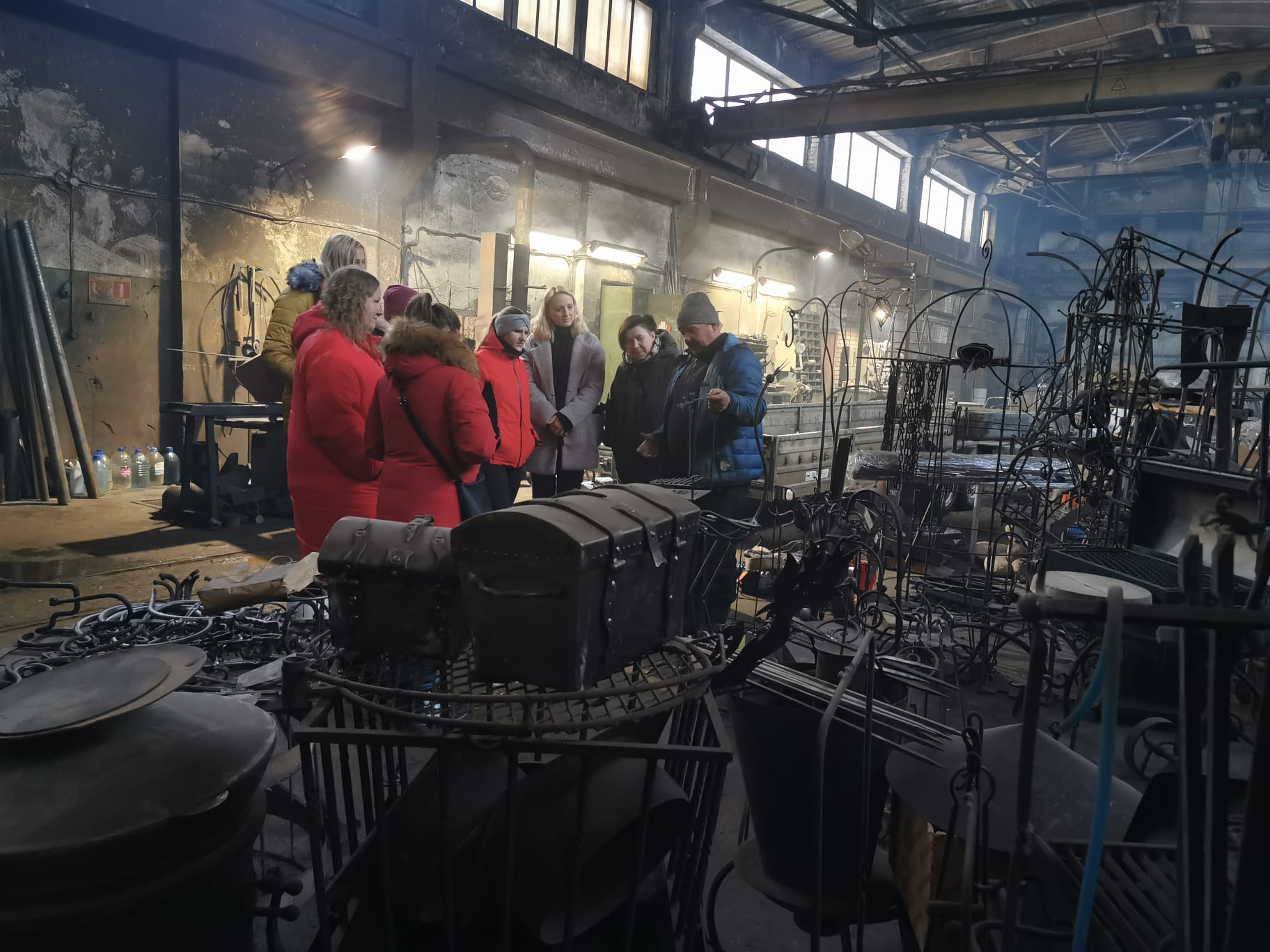 Ciemojāmies arī kalēja darbnīcā "Kalnmesteri", kur no metāla top interesanti mākslas darbi. Saimniecības īpašnieks, kalējs Edvīns Šakals, rādot savas amata prasmes, stāstot par ilggadēju pieredzi, jauniešus aicināja nebaidīties, bet darīt.
