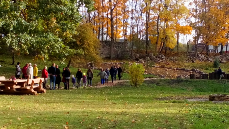 Biedrības vadītājas Sniedze Birgere un Irēna Daukste ar prieku un gandarījumu stāstīja par projekta īstenošanas gaitu: “Projekta ideja radās 2017. gada jūlijā, skatoties no skolas uz veco skolas dārzu. Ir galds ar soliņiem, dīķis un apkārt pliks zālājs. Kā būtu, ja šeit izveidotu kādu taku? Šī doma nelika mieru. Irēna aizbrauca uz Tukuma novada “Valguma pasauli”, lai redzētu, kā tas izskatās dabā. Redzētais vēl  vairāk pārliecināja par idejas īstenošanas iespēju. Kopīgi ar Sniedzi uzrakstījām projektu un iesniedzām Brocēnu novada pašvaldībā. Apstiprināja un piešķīra finansējumu 900 eiro.”