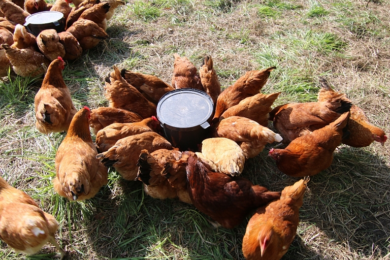 Saimniecībā vistām olu dēšanai un nakšņošanai ir brīvi pieejama mobilā kūts ar laktām un dēšanas ligzdām, kur arī lietus laikā un gaidāmo briesmu gadījumā vistas var paslēpties. Šeit vistas brīvi uzturas dabiskā vidē, netiek barotas ar augšanas stimulatoriem, antibiotikām un citām mākslīgi radītām piedevām. Piebarošanai tiek izmantota organiska un bioloģiska barība, kas tiek audzēta uz vietas saimniecībā vai arī iegādāta no apkārt esošajām bioloģiskajām saimniecībām.