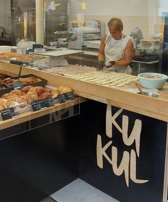 Engurē “KuKul” republikā tās īpašniece Sintija Berkolde kopā ar vīru un savu komandu saimnieko jau pusotru gadu. Pandēmijas laikā durvis vērusi ceptuve “KuKul”. Sākotnējā doma bijusi izveidot un atvērt mazu, mājīgu ceptuvīti, kur, pircējiem ienākot, smaržotu visa māja, lai būtu redzams viss gatavošanas process ar mīklas mīcīšanu, pīrāgu, smalkmaizīšu gatavošanu, kas radītu sajūtu “kā mājās”. Sintijai jau sen bijusi doma par savu maizes ceptuvi, kur strādātu kopā ar savu mammu Elitu.