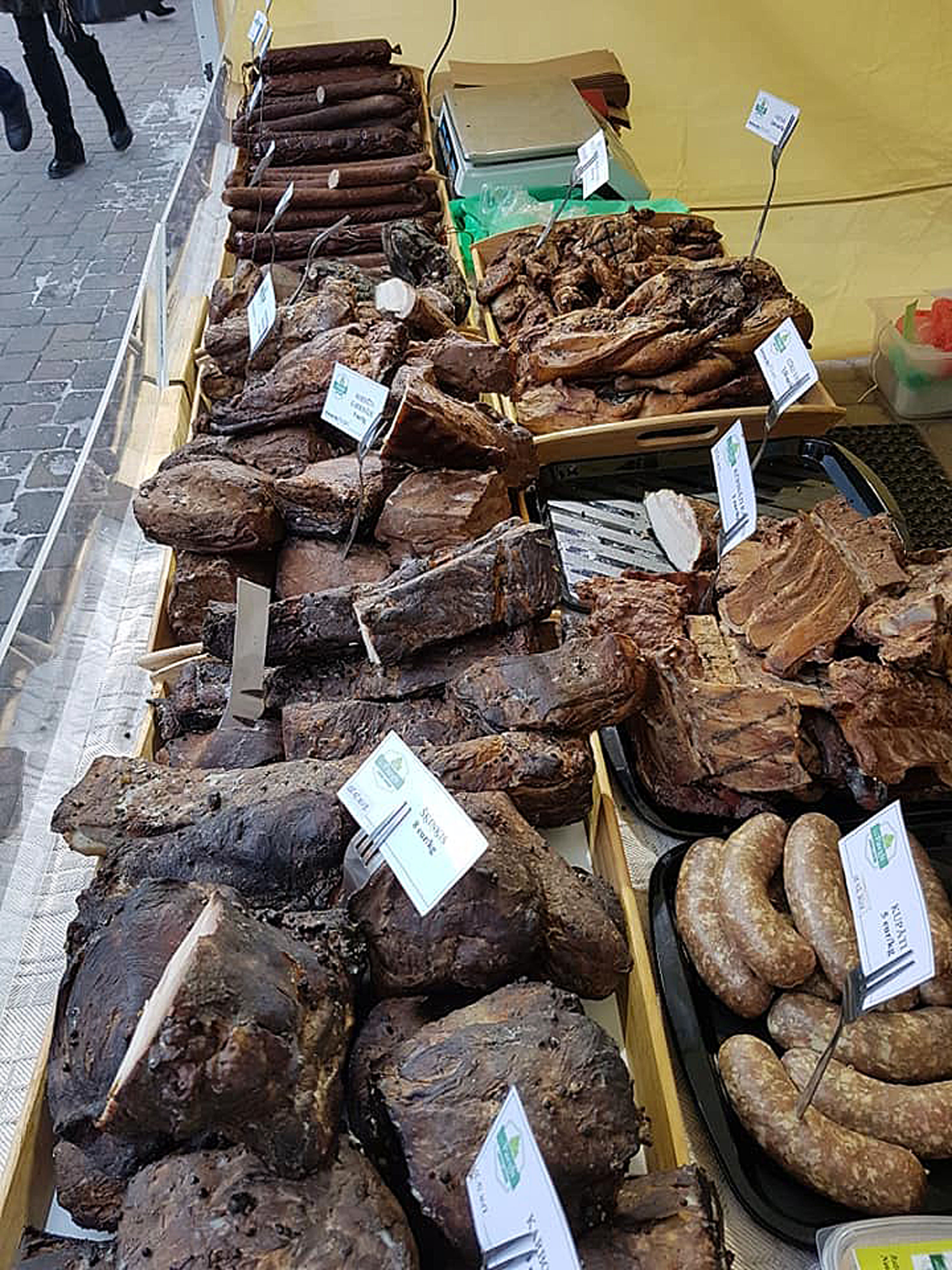 Saimniecības piedāvājumā ir gaļas produkti, kas pagatavoti mājas apstākļos. To pagatavošanai netiek izmantoti konservanti un garšas pastiprinātāji. Gaļas izstrādājumi no citiem līdzīgiem produktiem atšķiras ar pagatavošanas veidu, garšas īpašībām, izskatu un smaržu. Ražošanas process ir individuāls katram produkcijas veidam. Pēc gaļas pirmapstrādes un sadalīšanas cūkgaļu marinē trīs dienas, tad desmit stundas kūpina. Gaļu sagatavo divos veidos – marinētu un sālītu pēc klasiskās metodes.