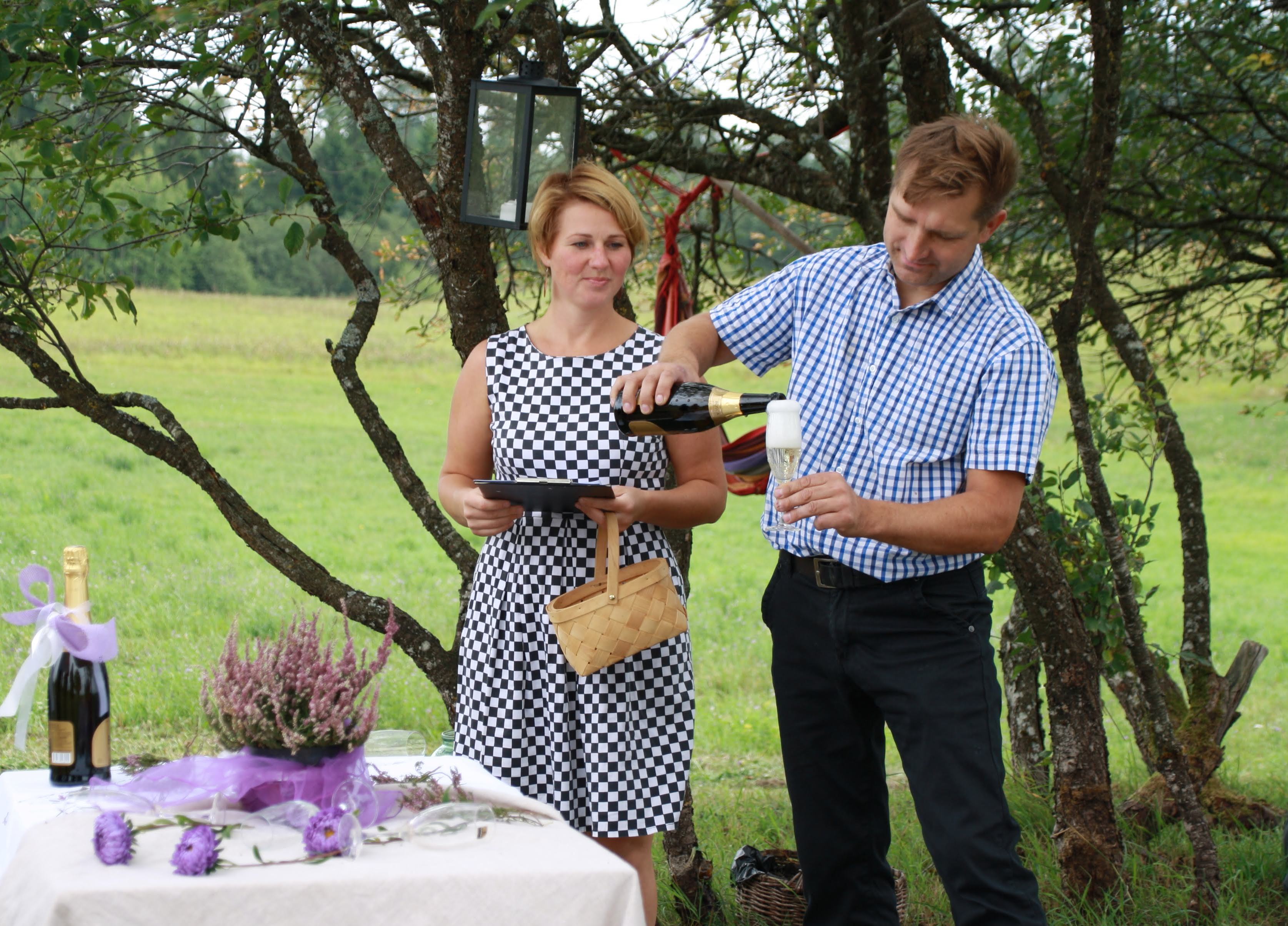 – Paši domājām, ka vēl neesam gatavi uzņemt viesus savā sētā. Taču bija vasara, jūlijs, mana vārdadiena. Teicu, ka vēlos svinēt sava stilā. Vienkārši un tajā pat laika oriģināli. Tā, kā būs raksturīgi tikai man. Saldus Tūrisma un informācijas centra meitenes palīdzēja izveidot afišu, biju nodibinājusi labas attiecības ar profesionālu fotogrāfi, un ielikām sociālajos tīklos uzaicinājumu uz Burciņvakaru “Jātniekos”. Vīrs iznesa lielos galdus, izveidoja bāru. Izmazgāju 50 burciņas uzkodu pasniegšanai, un meita, kurai savos desmit gados ļoti patīk gatavot, pagatavoja kokteiļus. Ar baltu veco “javu” atbrauca vietējais puisis Didzis, kurš spēlēja ģitāru un dziedāja. Tādā brīvā gaisotnē, katrs ar savu pledu, paņēmuši savu kokteilīti, ciemiņi sasēda ābeļdārzā starp jaunajām ābelītēm. Izdevās jauks pasākums mierīgā gaisotnē, vērojot saulrietu un klausoties patīkamu mūziku. Bērniem par prieku nolikām trušu mājas, jo saimniecībā ir arī truši, vistas un buļļi, jo saprotu, ka ar tūrismu vēl nevaru nopelnīt.