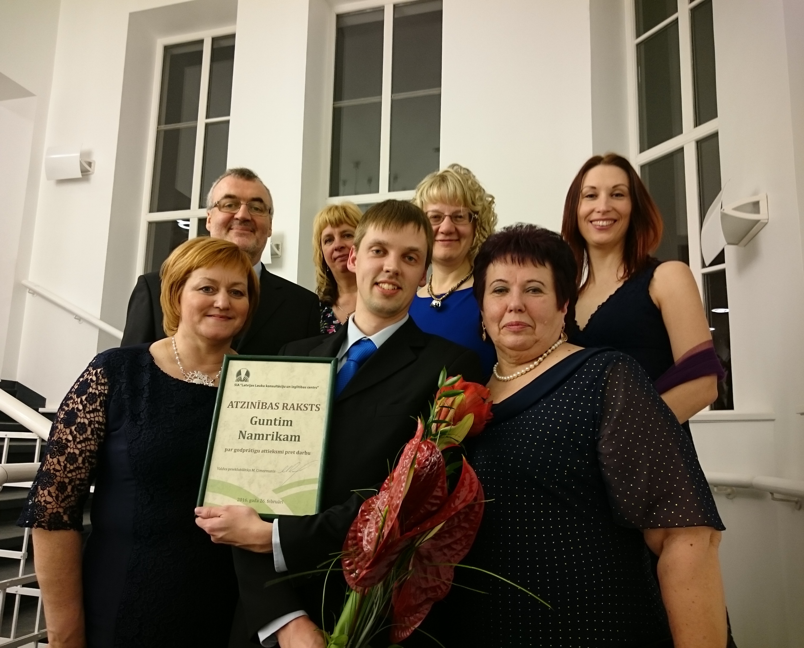 Pateicības saņēma ne tikai lauku saimniecības, bet arī tie, kas ikdienā palīdz un konsultē lauksaimniekus visdažādākajos jautājumos. LLKC Talsu nodaļas vadītājs Alfons Spēks un kolēģi sveica Talsu konsultāciju biroja ekonomistu Gunti Namriku par labu, uzcītīgu un godprātīgu attieksmi pret darbu.