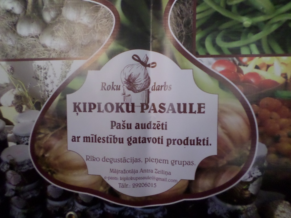 Saimniece cienā ar ķiploku tēju un zupu, kas ir īstajā brīdī pēc tāli mērotā ceļa, dod nobaudīt ķiploku pulveri, marinētus ķiploku ziedus, ķiploku etiķi, aso mērcīti „Rīkļu rāvējs”, kur ir tomāti ar ķiploku un aso piparu, ķiploku “Ķip–ķip” ledenes ar ingveru, kuras ir īstens veselīgs kārums ne tikai bērniem, bet arī pieaugušajiem. Bez iepriekš minētā Antra piedāvā arī ļoti daudzas citas lietas, t. sk. konservus no tomātiem, kabačiem, paprikas un citiem dārzeņiem, kur vienmēr tiek pievienots ķiploks, kā arī saldos ievārījums no pašu audzētām ogām. Saimnieces rokās pat vienkārša ķiploku buntīte pārtop par elegantu rotājumu.