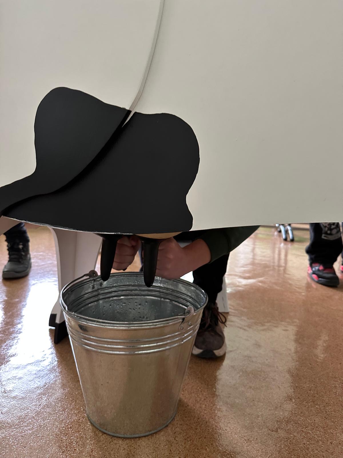 · Skolēniem bija iespēja izmēģināt spēku un arī apgūt prasmes govs slaukšanā. Jāatzīst, ka vairums jauniešu to centās izdarīt ar spēku un slaukšana neizdevās, bet bija arī tādi skolēni, kuri, pirmo reizi to darot, prasmes apguva uzreiz un slaukšana padevās raita un viegla.