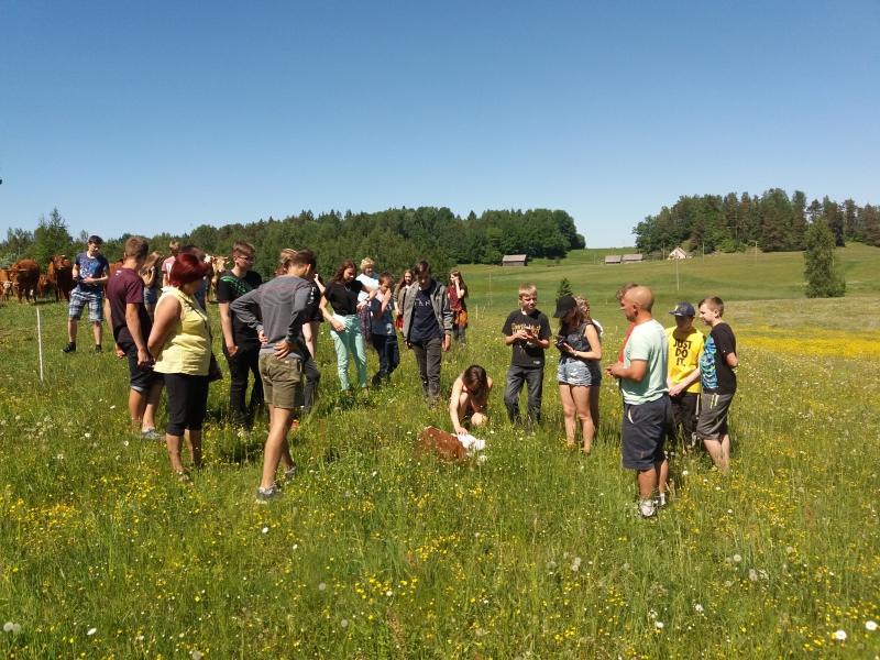 Madonas novada Aronas pagastā apmeklējām saimniecību, kur saimnieko Kusas pamatskolas absolvents Renārs Cimers. Skolēni varēja uzzināt par attīstības iespējām laukos bioloģiskās gaļas liellopu audzēšanas saimniecībā, apskatīt saimniecību un uzklausīt Renāra stāstījumu par saimniekošanas pieredzi. Kusas pamatskolas skolēni kopā ar skolotāju Inesi Brišku apskatīja saimniecības gaļas liellopu ganāmpulku, priecājās par mazajiem, ņiprajiem, drošajiem teliņiem. Mums visiem patika Renāra stāstījums par to, kā viņš izdomājis ne tikai strādāt algotu darbu, bet arī ģimenei – vairākām paaudzēm piepalīdzot uzsākt saimniekošanu savas dzimtas īpašumā. Renārs uzsvēra lielo ģimenes atbalstu, it sevišķi omes Staņislavas nesavtīgās un nemitīgās rūpes par saimniecības dzīvniekiem. Skolēni bija ļoti ieinteresēti Renāra stāstījumā un saimniecības ganāmpulka apskatē, daži jaunieši devās palīgā saimniekam pārdzīt lopiņus uz jaunām ganībām. Gana darbojušies pa saimniecības darbiem, visi mielojāmies ar mammas Inas ceptām bulciņām un slaveno rabarberu ķīseli. Lai vairāk mums būtu tik nopietnu jauniešu kā Renārs Cimers, kurš neatlaidīgi mācās, saimnieko un gūst pieredzi, attīsta un arī paplašina saimniecību. Bija tik jauki redzēt, ka mums, Madonas novadā, ir stipras ģimenes, kuras kopā darbojas un neatlaidīgi attīsta un kopj savas saimniecības.