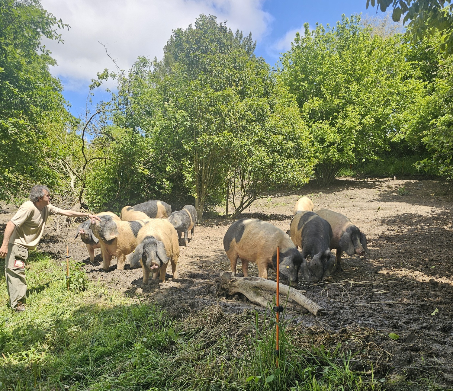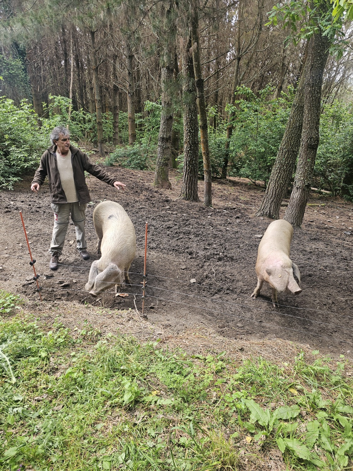 Šajā ciemā dzīvo 60 cilvēki, 3 no tiem ir nodarbināti. Saimniekam pieder avots, ko viņš ir mantojis no vecvecākiem, no šī avota ūdeni ņem viss ciems. Bio saimniecībā tiek audzēta ķeltu cūku šķirne, kurām ir ziemeļu mežacūku izcelsme. Pēc skata tas ir ar garu ķermeni, garām kājām un lielām ausīm. Tie ir ļoti izturīgi sivēni, viegli pielāgojas dzīvei dabā. Saimniecībai ir arī savs cūku puika un 6 sivēnmātes, kurām ir 2,5 dzemdības gadā. Ja no 12 sivēniem 8-9 izdzīvo, tas ir labi. Sivēnmātes ir 3 līdz 7 gadu vecas. Kad viņas aiziet pensijā, tās netiek kautas, jo ir kā ģimenes locekļi. Pensionētās cūkas dzīvo atsevišķi. Šobrīd tādas saimniecībā ir 4. Sivēni piedzimst dabīgi, pie mātes dzīvo līdz 2,5 mēnešu vecumam, tiek baroti 15 mēnešus. Sivēni ir kastrēti, tāpēc var dzīvot kopā lielā barā. Cūkas tiek piebarotas ar kukurūzu, graudaugiem un soju. Šeit ir ābeļdārzi, cūkas barojas ar āboliem, zīlēm, ēdamiem kastaņiem, tā ir delikatese. Cūkas dzīvo savā vaļā. Teritorija ierobežota pa perimetru ar elektrisko žogu. Mežacūkas šeit nerādās, jo viņiem ir kuilis, līdz ar to nav jābaidās no cūku mēra.