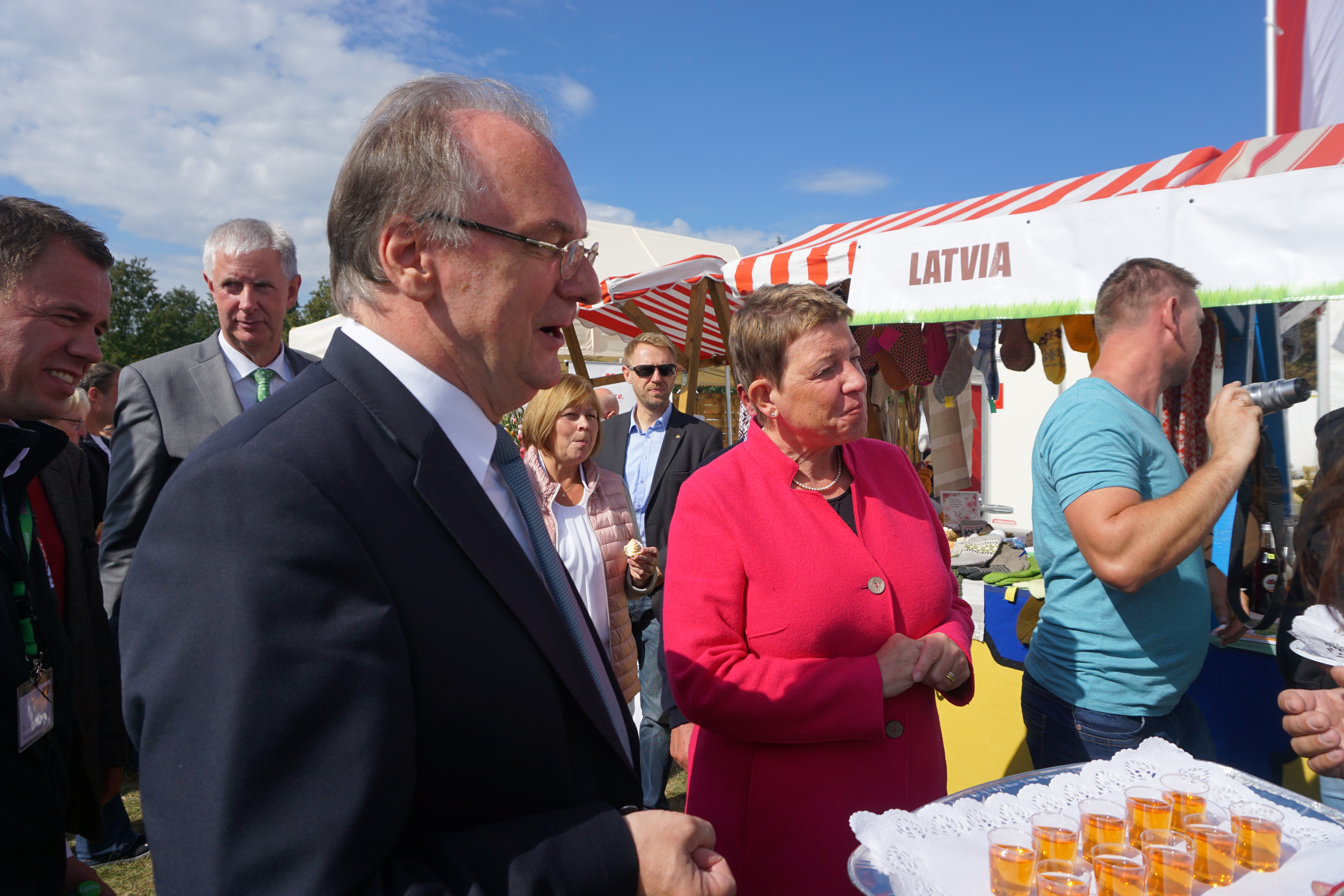 Šogad izstādi apmeklēja Saksijas–Anhaltes federālās zemes ministru prezidents Dr. Reiners Hazelofs. Ar apmeklējumu viņš pagodināja arī Latvijas stendu. Ministru prezidenta un Zemkopības ministrijas delegācijas pārstāvjus pacienājām ar mūsu tradicionālajiem produktiem – saņēmām uzslavas un veiksmes vēlējumus Latvijai.
