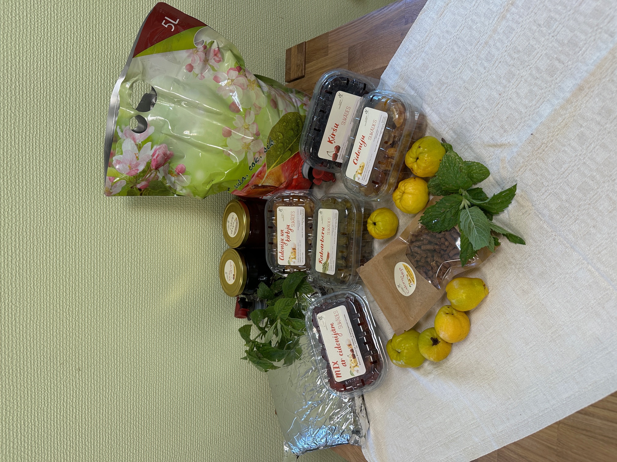 “Tagad eksperimentu veidā varu piedāvāt astoņus dažādus sukāžu variantus: cidoniju sukādes, ķirbju sukādes, cidoniju un ķirbju sukādes, rabarberu sukādes, ķišu sukādes, cidonijas ķiršu un zemeņu sīrupos, sukāžu maisījumu. Piedāvājumā ir lielākoties sīrups no cidonijām,” pieticīgi uzskaita saimnieks.