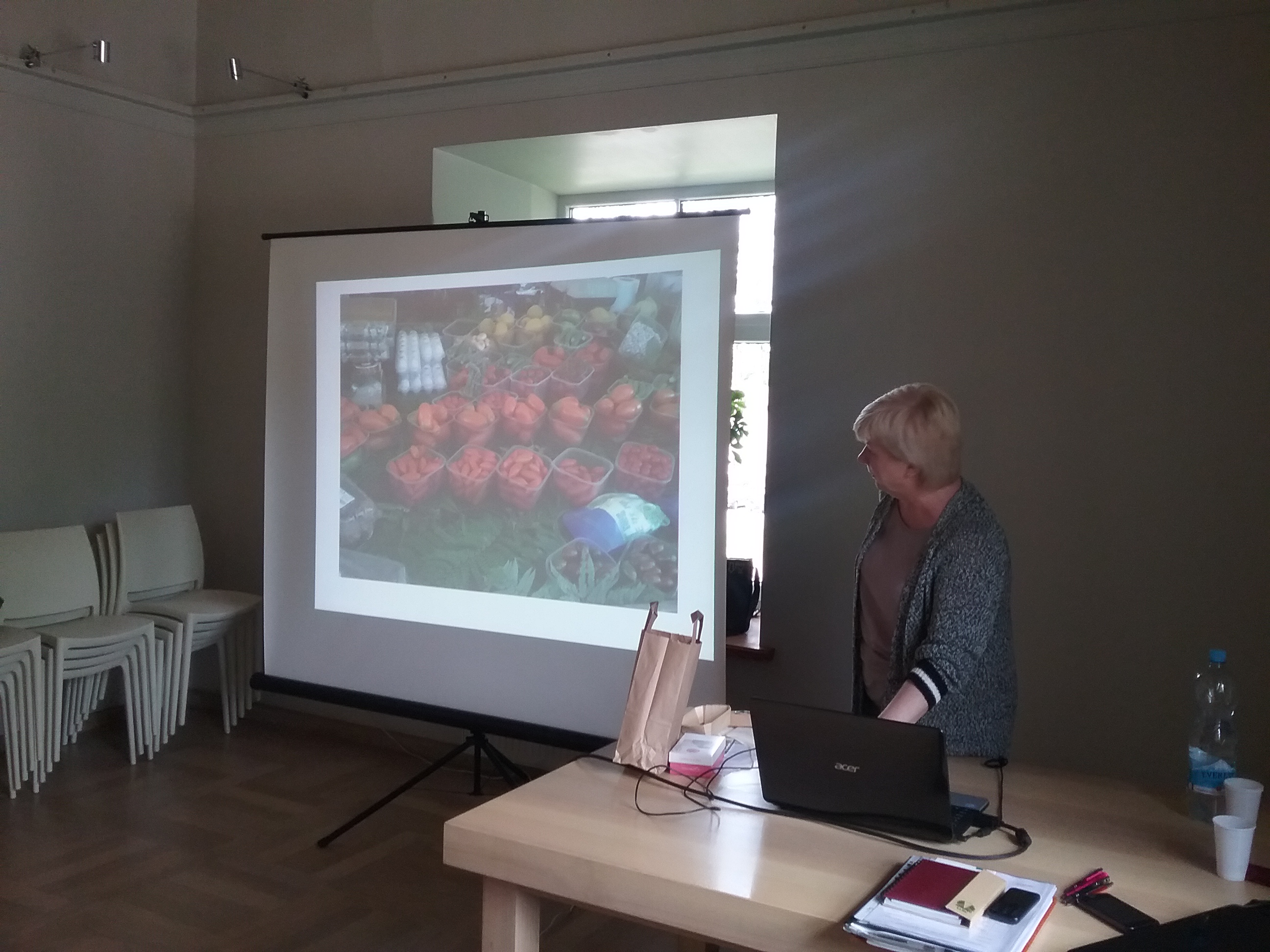 Biedrības “Slow Food Straupe” dibinātāja un biedrības “Vesels pilsētā un laukos” valdes priekšsēdētāja Astrīde Rozīte dalījās gūtajā pieredzē gan Straupē, gan Itālijā, Vācijā un citās valstīs, kā savu saražoto produkciju tirgotājam parādīt, pasniegt un prezentēt publiskajā telpā. Fotoattēlos tika rādīts, kā pircējs produktu uztver, novērtē, cik svarīgs ir paša tirgotāja tēls un prasme savu produktu izcelt. Šis seminārs ne vienam vien ražotājam lika pārdomāt savu un produkcijas tēlu, par detaļām produkta iepakojumā, dizainā un tirdzniecības vietas noformējumā.