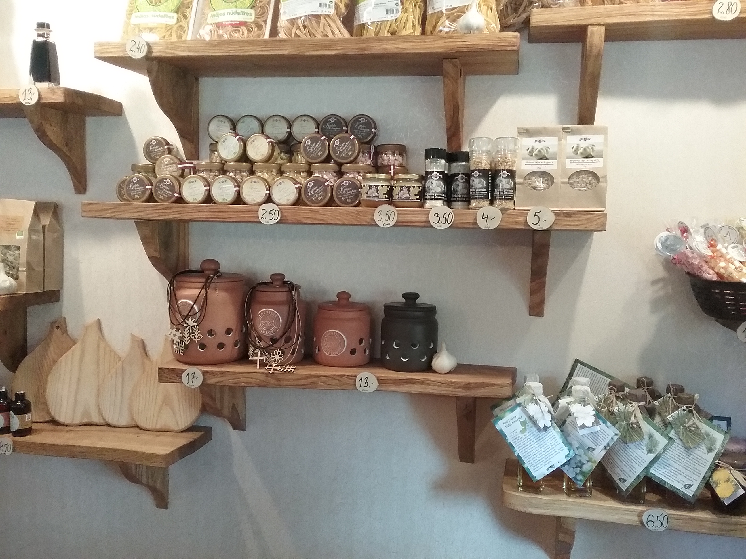 Pirms neilga laika Raunas centrā vecās aptiekas mājā ar vietējās pašvaldības atbalstu divas uzņēmīgas jaunietes atvērušas vietējo produktu veikaliņu, izvietojot SIA “Latvijas ķiploks” ražotni un veikaliņu. Īpašniece Sintija Rude dalījās savā pieredzē par uzņēmējdarbības uzsākšanu, ražotnes un tirdzniecības vietas izveidošanu. ”Latvijas ķiploka” telpas iekārtotas vienkārši, bet ļoti gaumīgi, mājīgi un latviski. Veikaliņā tiek tirgoti arī citu Raunas novada ražotāju produkti. Ekskursantu grupām tiek piedāvātas arī dažādas produktu degustācijas. Šobrīd pieprasītākā esot “Ķiploku mērija”, kurai ir īpaša “Latvijas ķiploka” izveidota recepte. Sintija saka, ka plānu vēl esot daudz un lieli. Bet par līdz šim paveikto jāsaka arī liels paldies ģimenēm, gan Sintijas, gan Ineses (Inese Krūklīte, SIA “Latvijas ķiploks” otra īpašniece), kuras ļoti daudz palīdzējušas “Latvijas ķiploka” izaugsmē. Iepriekš Sintija daudzkārt ir piedalījusies LLKC rīkotajās mācībās, semināros, jauniešu programmā, kā arī vietējās rīcības grupas “Cēsu rajona lauku partnerība” mājražošanu veicināšanas projektu aktivitātēs. Sintija iesaka arī citiem, kuri vēlas uzsākt uzņēmējdarbību, izmantot iespēju un doties uz mācībām un semināriem.