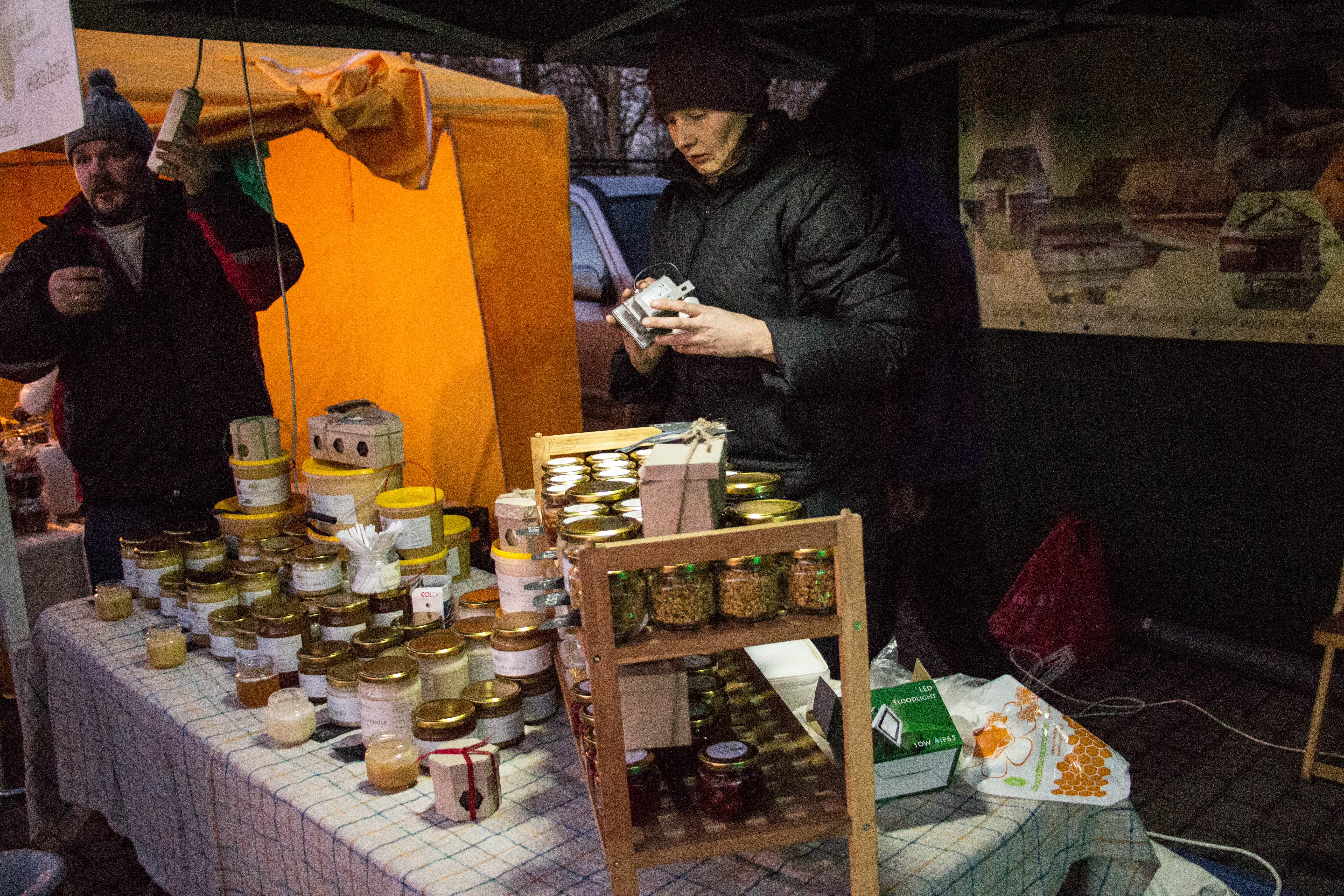 Sadarbībā ar Jelgavas novada biedrību “Pārtikas amatnieki” pirmo mājražotāju tirdziņu, līksmu Mārtiņdienu ieskandējot, aizvadījām 10. novembrī. Interese bija tik liela, ka kļuva skaidrs, – jārīko vēl kāds tirdziņš. Ziemassvētku gaidīšanas laikā to arī izdarījām. Par spīti tumsai, cilvēki nāca un izvēlējās gardus, mājās tapušus labumus – sierus, maizi, gaļu, rokdarbus un dažnedažādus saldumus. Par pārsteigumu pircējiem bija parūpējies LLKC augkopības eksperts Māris Narvils, piedāvājot nogaršot karstalu.