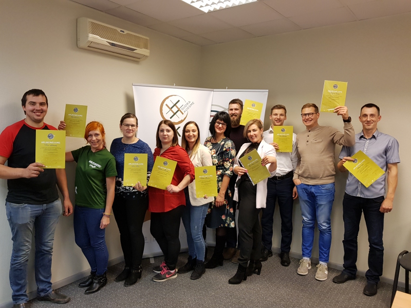 Paldies ikvienam iesaistītajam šajā mācību norisē – LLKC Saldus konsultācija biroja darbiniekiem, Saldus mākslas skolai (par rakstu darbiem uz apliecinājumiem), Līvai Apriķei, Ingai Polencai, Didzim Dreimanim, Laugaļu ģimenei, Jānim Volksonam, Asnātei Avotniecei, Uldim Drišļukam, Edītei Irbei, Ilzei Grundmanei un Sandrai Fridrihsonei.