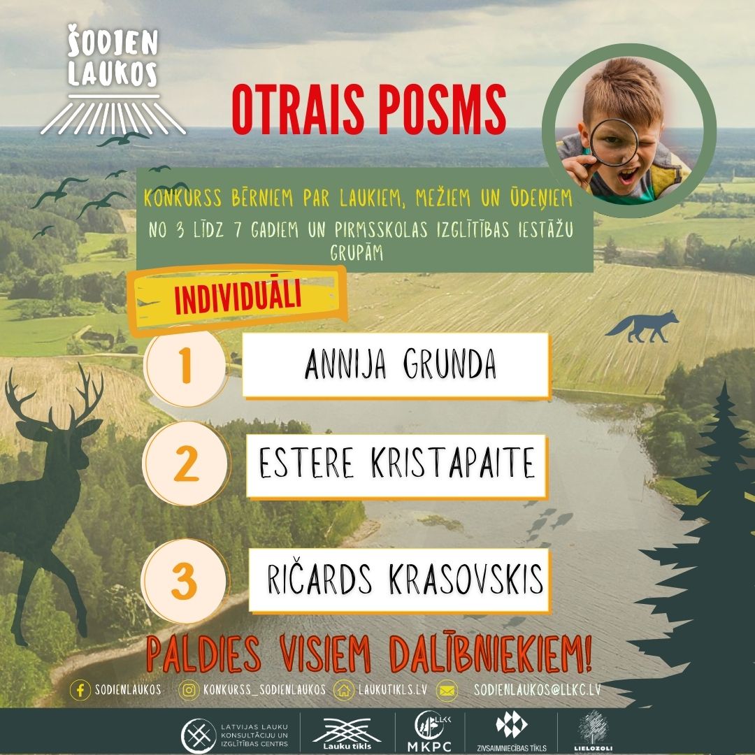Pašā vasaras viducī norisinājās konkursa “Šodien laukos” otrais posms. Tajā aicinājām piedalīties pašus mazākos dalībniekus vecumā no 3 līdz 7 gadiem. Kā ierasts, dalību varēja pieteikt gan individuālajā, gan komandas kategorijā, šogad dalībniekus skaits abās kategorijās bija vienāds – 14 komandas un 14 individuālie dalībnieki.