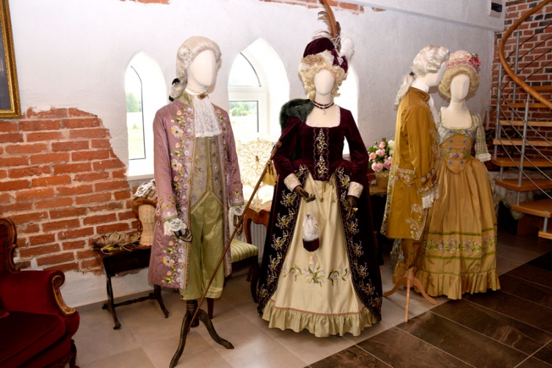 Savukārt ekskursiju vadītāja Elīna Kuzņecova, kura iekārtojusi tērpu ekspozīciju un darbojas Mazajā muižā Brunavas pagastā, netālu no Lietuvas robežas pie Grenctāles, atklāj, ka muiža esot «izaugusi», pateicoties Rundāles pilī vadītajām ekskursijām. E. Kuzņecova kopā ar savu mammu, kad pati vēl studēja universitātē, sāka organizēt teatralizētas ekskursijas, kuru laikā ieģērbās 18. gadsimta tērpu rekonstrukcijās un galminieku tēlos rādīja un stāstīja pils viesiem par tā laika dzīvi un vēsturi. «Paralēli šai ekskursiju darbībai attīstījās mūsu aizraušanās ar vēsturisko tērpu darināšanu,» stāsta E. Kuzņecova, «tā ir tāda liela joma, kas ir nišas produkts, jo Latvijā nav ļoti izplatīta vēsturisku tērpu šūšana, it īpaši rokoko laikmeta kontekstā, tāpēc, ka Latvijā nav arī tik daudz tādu piļu un muižu kā Rundāles pils.»