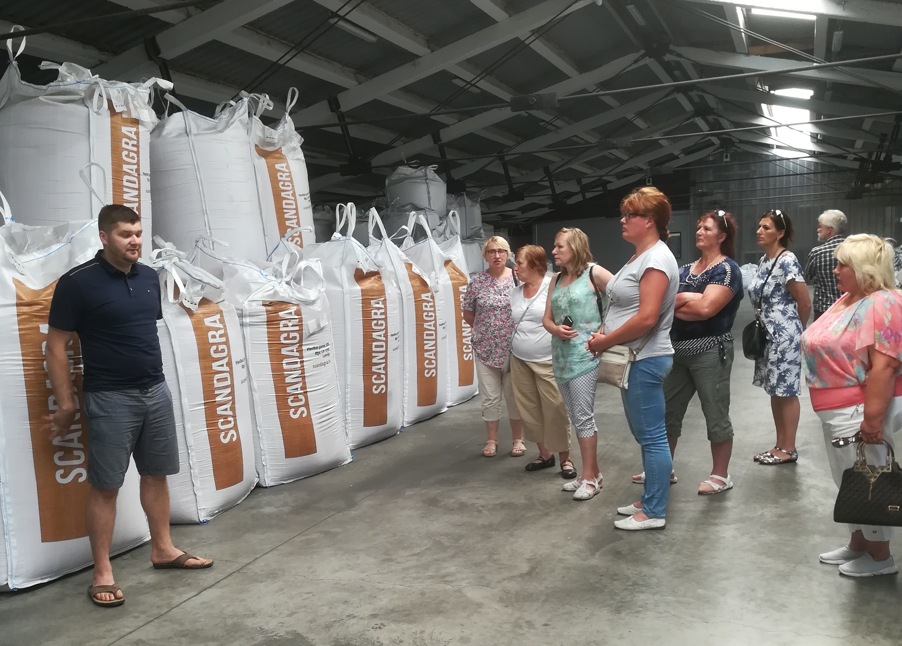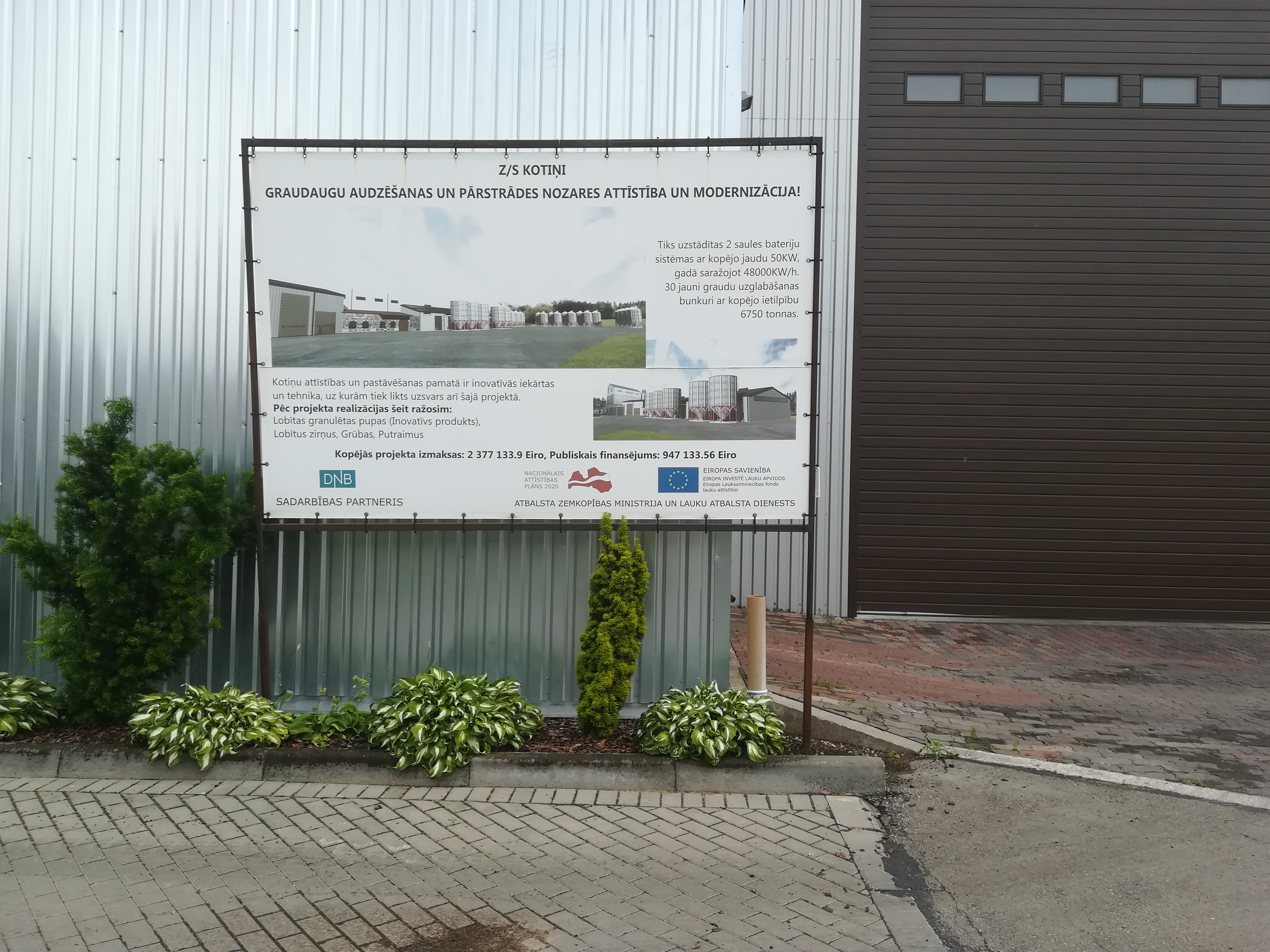Z/s “Kotiņi”, kas atrodas Šķilbēnu pagastā, nodarbojas ar graudkopību, un tās apstrādājamās zemes kopplatība ir ap 3000 ha, no kuriem lielāko daļu aizņem augstas kategorijas sertificētas sēklas platības, bet pārējās kultūraugi pārtikai un lopbarībai – mieži, kvieši, pupas, zirņi un rapsis. Saimniecībā ar speciālu sistēmu tiek tīrīti graudi un tiek nošķiroti piemaisījumi. “Kotiņu” papildu nozare ir pārtikai produktu ražošana un lopbarības miltu ražošana, tādā veidā katram saražotajam produktam tiek atrasts pielietojums un tiek radīta pievienotā vērtība. Šeit pat uz vietas saimniecībā apmeklētājiem ir iespēja iegādāties sertificētu graudaugu un pākšaugu sēklu, lopbarības miltus, pārtikas pupu, zirņu, kviešu, miežu miltus, miežu un kviešu grūbas, putraimus un pērļu grūbas, lobītus un šķeltus zirņus un pupas, kā arī pašu ražoto rapšu eļļu. Saimniecībā mums bija iespēja apskatīt jaunākās un modernākās graudaugu pārstrādes iekārtas un modernu lauksaimniecības tehniku. Saimniecība ir ieguvusi pārtikas kvalitātes zīmi “Zaļā karotīte”, kas apliecina, ka saimniecībā ražotā produkcija atbilst paaugstinātas kvalitātes kritērijiem, tie ir ražoti Latvijā, nesatur ĢMO un sintētiskās krāsvielas. Kotiņu saimniecības pārstāvis mums izstāstīja visu ražošanas procesu, saimniekošanas metodes, kā arī izrādīja visu saimniecību, atbildot uz visiem interesējošiem jautājumiem un dodot arī dažus padomus no saimniecības pieredzes.