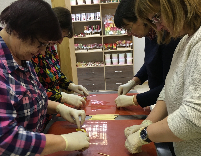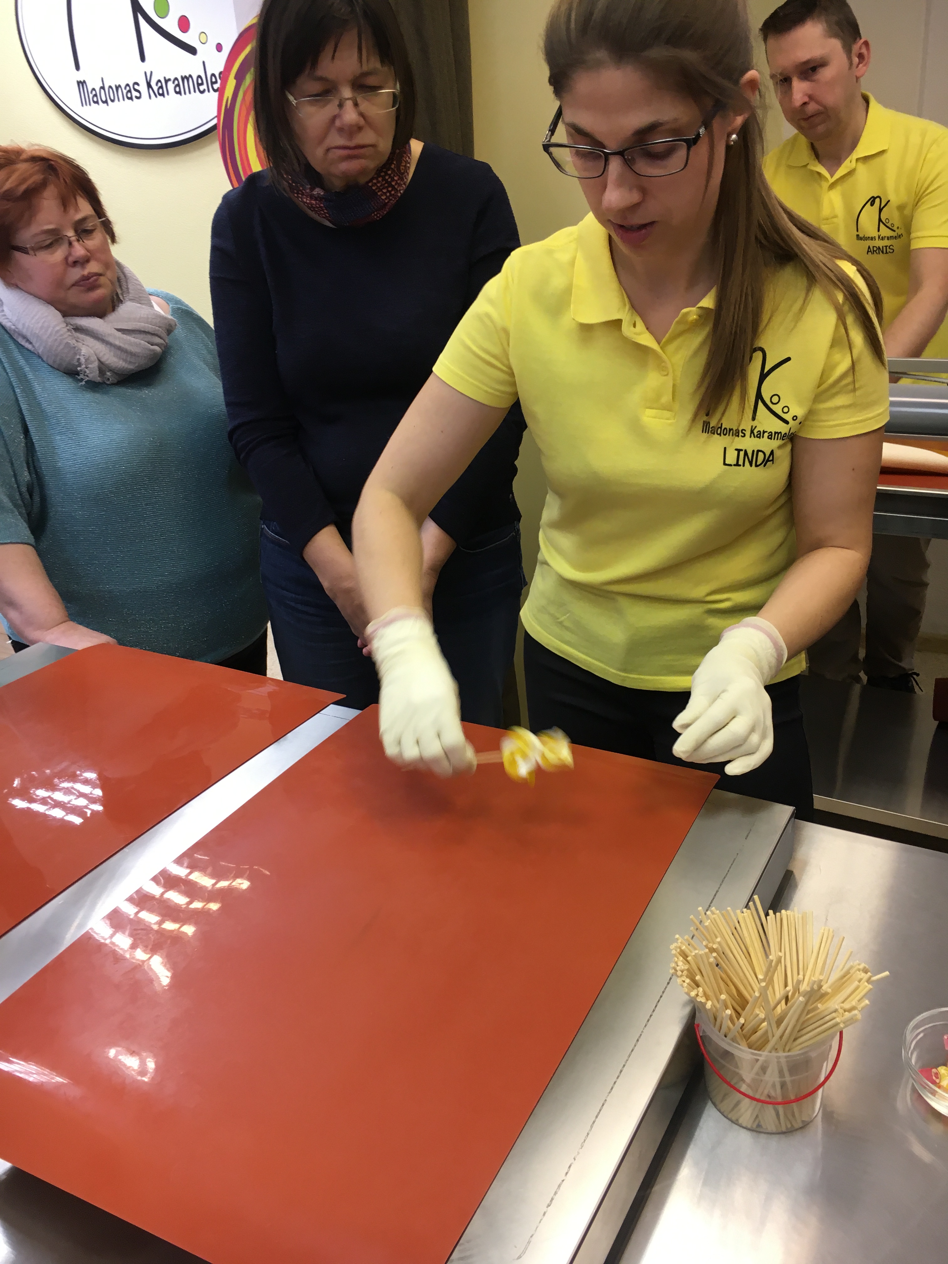No sieriem, kas tomēr ir sāļš produkts, dodamies klausīties, skatīties un arī mācīties, kā top karameles. Madonā jau vairāk kā piecus gadus darbojas uzņēmums “Madonas Karameles”, kur laipni uzņem apmeklētājus un ļauj tiem arī pašu rokām izmēģināt, kā tad ir uztaisīt karameli. Te uzreiz jāsaka, ka izskatās vienkāršāk, nekā tas patiesībā ir. Noklausāmies ļoti pārdomātu stāstu par uzņēmuma attīstību un spēju piesaistīt dažādus atbalsta veidus. Kamēr tiek gatavota karameļu masa, mūs iepazīstina ar karameļu ražošanas procesu. Viss process ir uzfilmēts un to vērojam lielformāta televizorā. Saprotam, ka cehā, kur tiek ražota karamele, mums nav jāatrodas, jo viss process notiek ļoti siltos apstākļos, jo ar sacietējušu karameli nav iespējams darboties. Siltumu un ātrumu, kādā top karamele, saprotam, tad, kad pēc saimnieces Lindas Blaževičas paraugdemonstrējumiem mēģinām arī katrs pats izveidot savu karameli. Izrādās, ka tas, kas izskatījies visvienkāršāk skatoties, patiesībā nemaz tā nav. Darbs pie karameļu ražošanas ir smags, bet rezultāts tik ļoti skaists un gards, atliek tikai apbrīnot saimnieku spējas un izdomu, piedāvājot arvien jaunus produktus.