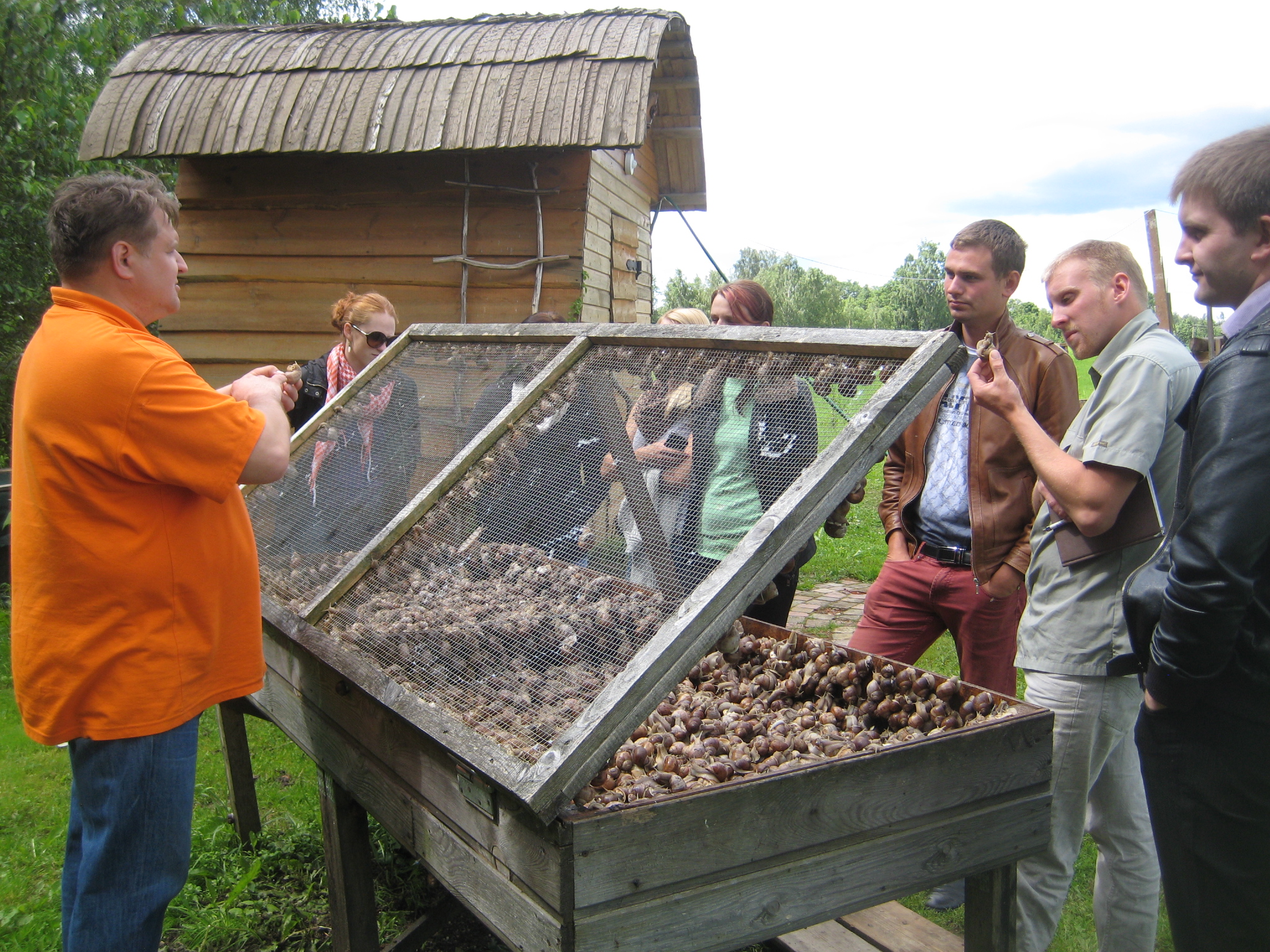 Trešajā mācību dienā tika organizēta ekskursija, kurā tika parādīti veiksmīgākie un netradicionālie uzņēmējdarbības piemēri lauku teritorijā. Devāmies uz Preiļu novada Jaunsaimniekiem – vīngliemežu audzētavu „Ošu mājas”, kur mūs sagaidīja saimnieks Ainis Noviks. Iepazīstoties ar vīngliemežu audzēšanu, bija iespēja arī tos degustēt. Viedokļi dalījās – citam garšoja, citam ne. Izjautājuši audzētavas īpašnieku, devāmies tālāk uz Aglonas pusi, viesu māju „Upenītes” jeb z/s „Sollomina muiža”, kas atrodas ezera krastā. Šeit mūs sagaidīja saimniece Inese Survilo, kura iepazīstināja ar savas viesu mājas un zemnieku saimniecības darbību. Šajā dienā jauniešiem bija iespēja redzēt saimniekošanu atšķirīgās nozarēs un saprast, ka ne tikai ar piensaimniecību vai gaļas liellopu audzēšanu var nopelnīt.