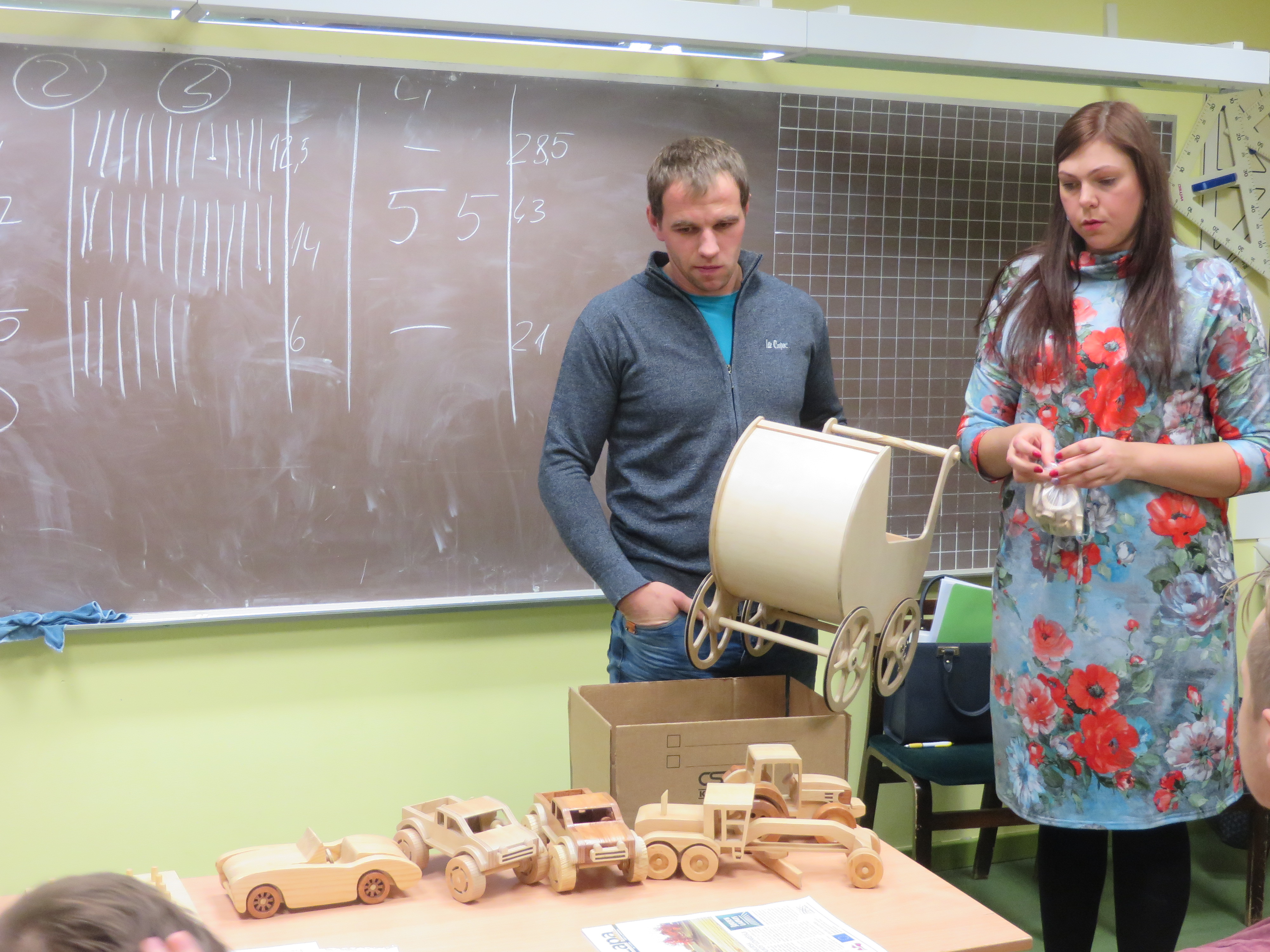Aizputes pagasta pamatskolā ar sevi un savu nodarbošanos iepazīstināja novadnieki Viesturs un Sanita Beļajevi, kuri nodarbojas ar gaļas liellopu audzēšanu un brīvos brīžos izgatavo kvalitatīvas un izturīgas koka un saplākšņa rotaļlietas, kā arī šūtas mantiņas mazuļiem (Emii&Elii Toys). Tas ir ļoti jauks piemērs tam, ka tad, ja ir darba mīlestība, izdoma un apņēmība, iespējams radīt apbrīnojamas lietas, kas patīk pašiem un sagādā prieku arī citiem.