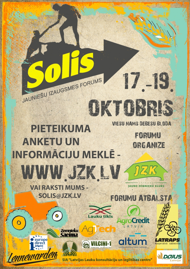 Biedrība „Latvijas Jauno zemnieku klubs” izsludina pieteikšanos dalībai jauniešu izaugsmes forumā „Solis”, kas šogad norisināsies jau trešo reizi.