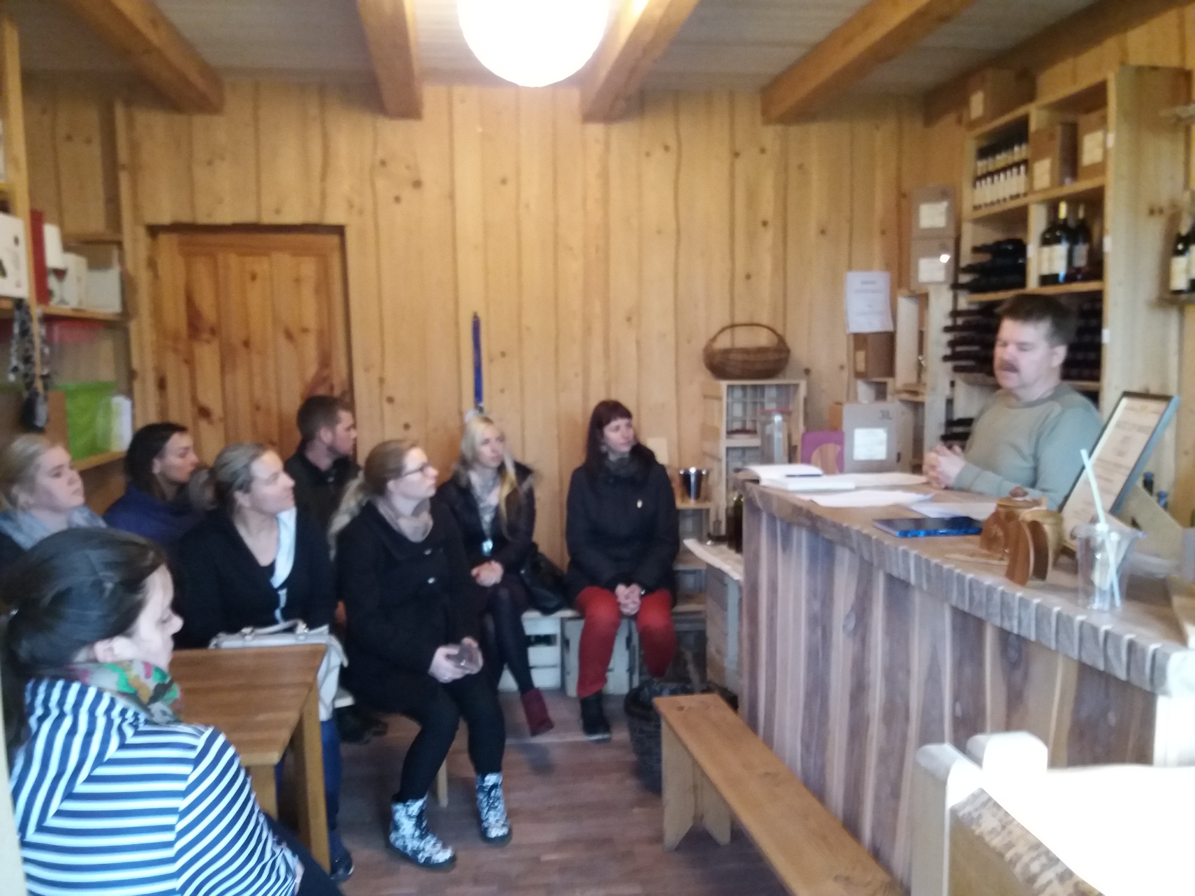 13. oktobrī pēc biznesa plānu aizstāvēšanas, devāmies pelnītā pieredzes apmaiņas braucienā pie Kandavas novada uzņēmējiem. “Tēviņu” mājas vīna ražotnē, tās īpašnieks Ivo Immermanis, dalījās pieredzē kā radusies vīna ražotne, un kādiem posmiem jāiet cauri vīna darināšanas procesā. Tālāk devāmies uz lauku sētu “Indāni”, kur mums sirsnīgi uzņēma tās saimniece Signe Ezeriņa. Pēc lauku sētas apskates, pie siltas tējas tases ar lielu interesi klausījāmies saimnieces stāstījumā par to, kā šī sēta iegūta, izveidota un par lauku tūrisma uzsākšanu. Var just, ka Indānu saimniece patiešām mīl cilvēkus un tādēļ arī veiksmīgi var īstenot uzņēmējdarbību šajā nozarē. Brauciena noslēgumā iegriezāmies pie iepriekšējā gada mācību dalībniecess Kristas Celmas, kur saimniecībā aug ap 40 zīdkokiem, kas Latvijā ir kaut kas neierasts. Iepriekšējā gadā Krista Celma “Laukiem Būt” konkursā nepiedalījās, taču šogad apsver tādu iespēju, tādēļ cerams, mēs par viņu vēl dzirdēsim.