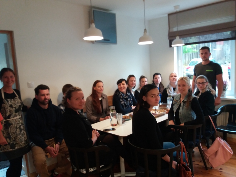 Visvairāk jauniešu galvas sagrozīja finanšu un grāmatvedības informācija, tādēļ atslodzei devāmies arī pie vietējiem jaunajiem uzņēmējiem Talsos. Kafejnīca “Māsas”- vieta, kur nogaršot gardus konditorejas izstrādājumus un ir vienīgā vieta Talsos, kur baudīt Illy kafiju. Īpašniece Laine Jekuma dalījās pieredzē par uzņēmējdarbības uzsākšanu un ģimenes svarīgo lomu šajā procesā. Ģimene ir viņas lielākais atbalsts. Mudināja jauniešus sākt darīt ar mazumiņu, pamēģināt! Citā dienā apmeklējām StoneHill radošo darbnīcu, kas nodarbojas ar ādas izstrādājumu darināšanu. Priecājamies, ka jaunie uzņēmēji – Diāna un Miķelis Šteinbergi ir atgriezušies no dzīves lielpilsētās, lai strādātu un dzīvotu šeit. Pastāstīja par izaicinājumiem un pielāgošanos Latvijas pircējam. Katram jaunietim bija iespēja pašam izveidot savu personalizēto ādas aproci. Arī Talsu birojam tika īpašnieku darināta nozīme - Laukiem būt!