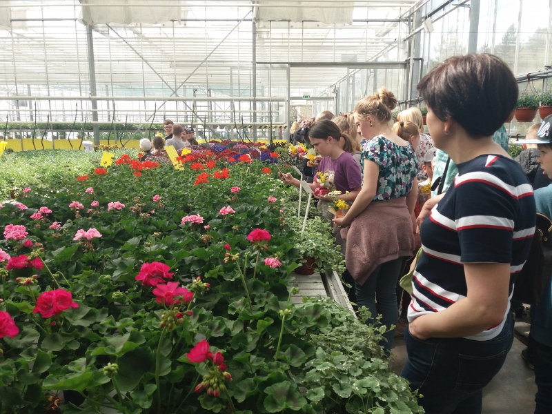 Ar pilnajā rokām skolēni turpināja pastaigu uz jauno, plašo siltumnīcu. Tā sadalīta trīs milzīgās zālēs, kur var ne tikai apjukt augu dažādībā, bet arī iespējams iegādāties noskatīto. Lai efektīvi saimniekotu, pati siltumnīca aprīkota ar ūdens savākšanas sistēmu – gan no lietus ūdeņiem, gan ziemas periodā no sniegiem. Siltajā telpu klimatā audzējot pat citronkokus un olīvkokus. Pēdējā aktivitāte, kurā skolēni piedalījās, bija podošana, kad ar speciālas iekārtas palīdzību pavisam vienkārši tiek sastādīti augi podos, kas aiztaupa ilglaicīgu roku darbu. Nodarbību vadīja siltumnīcu vadītāja un galvenā agronome Laima Ozoliņa.