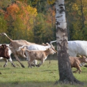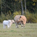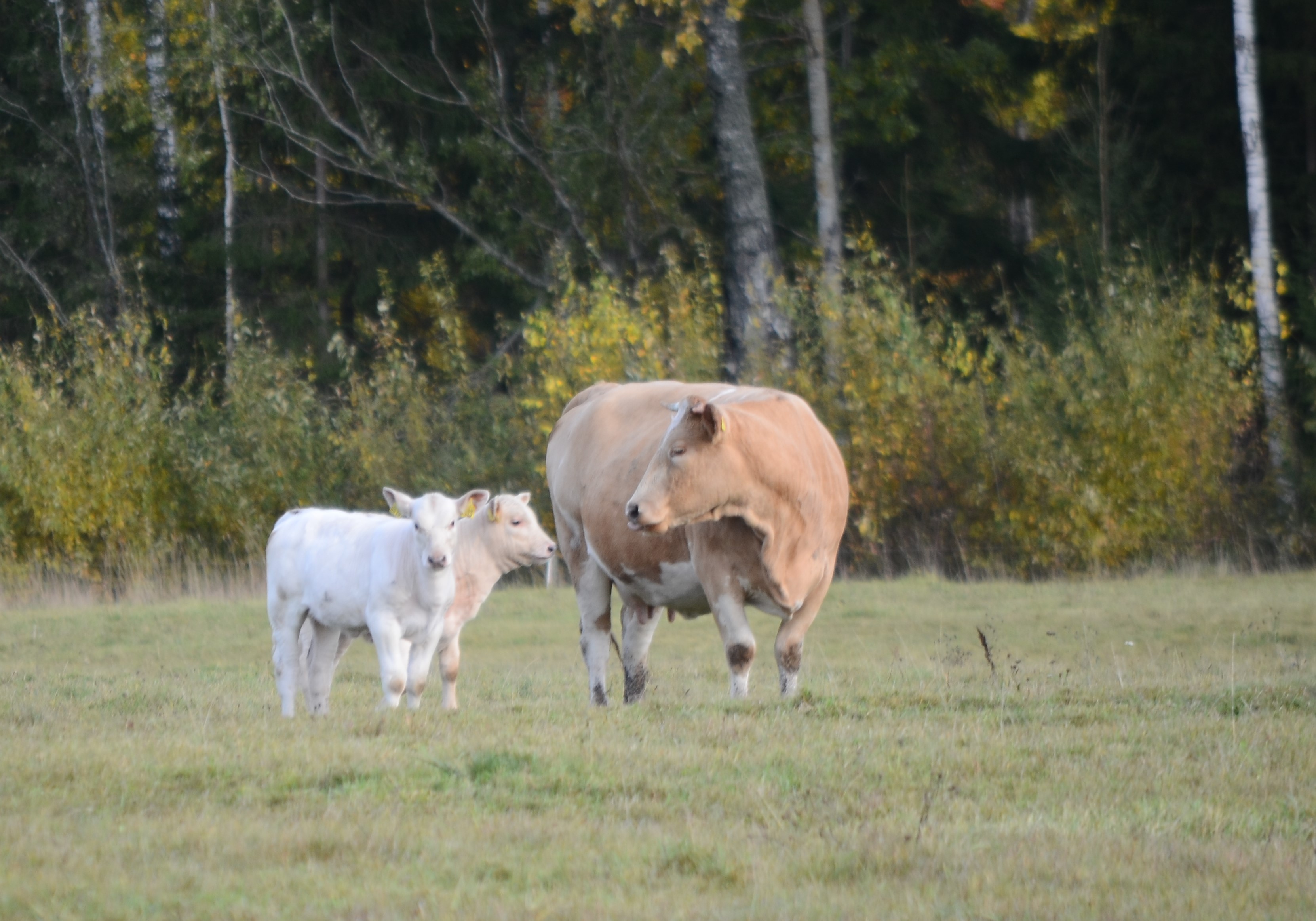 Atpakaļceļā, baudot saules pielietā rudens lapu zelta ainavas, skolēni atgriezās Stāmerienas pagastā, kur paciemojās Rēderu ģimenes saimniecībā “Sūnekļi”. Šī ir bioloģiska saimniecība jau 11 gadus, kur nodarbojas ar gaļas liellopu audzēšanu un graudkopību. Skolēnu lielu interesi piesaistīja gaļas lopu ganāmpulks, kurā visi ar lielu prieku, nemaz nebaidoties, devās lopu ganībās, lai gotiņas pacienātu ar saimnieka sarūpēto maizīti. Pašlaik ganāmpulkā ir dažādu šķirņu krustojumu 53 gaļas liellopi, jo visiem patīk, ka lopiņi ir dažādās krāsās, ir vizuāli interesantāks un acij tīkamāks skats. Šogad pirmo reizi saimniecībā tika audzētas kaņepes, kuru sēkliņas tika uzdāvinātas katram skolēnam, lai nākamgad varētu izaudzēt savā dārziņā un rudenī pagatavot ļoti garšīgu kaņepju sviestu. Šī ir tipiska ģimenes saimniecība, kurā strādā tikai vecāki ar bērniem, un, neskatoties uz smago darbu, bet, redzot, ka darbs nes arī augļus, ir cerība, ka bērni neaizbēgs no laukiem, jo meitas Anda un Daina jau strādā un mācās savās izvēlētajās profesijās tepat Stāmerienā un Gulbenē, palīdz vecākiem, bet saimniecības turpinātājs būs dēls Rūdis.