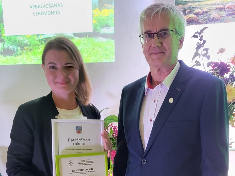 Attēlā: LLKC Limbažu biroja vadītājs Aigars Legzdiņš pasniedzis speciālbalvu SIA “Strēlnieki” saimniecei Lāsmai Miķelsonei