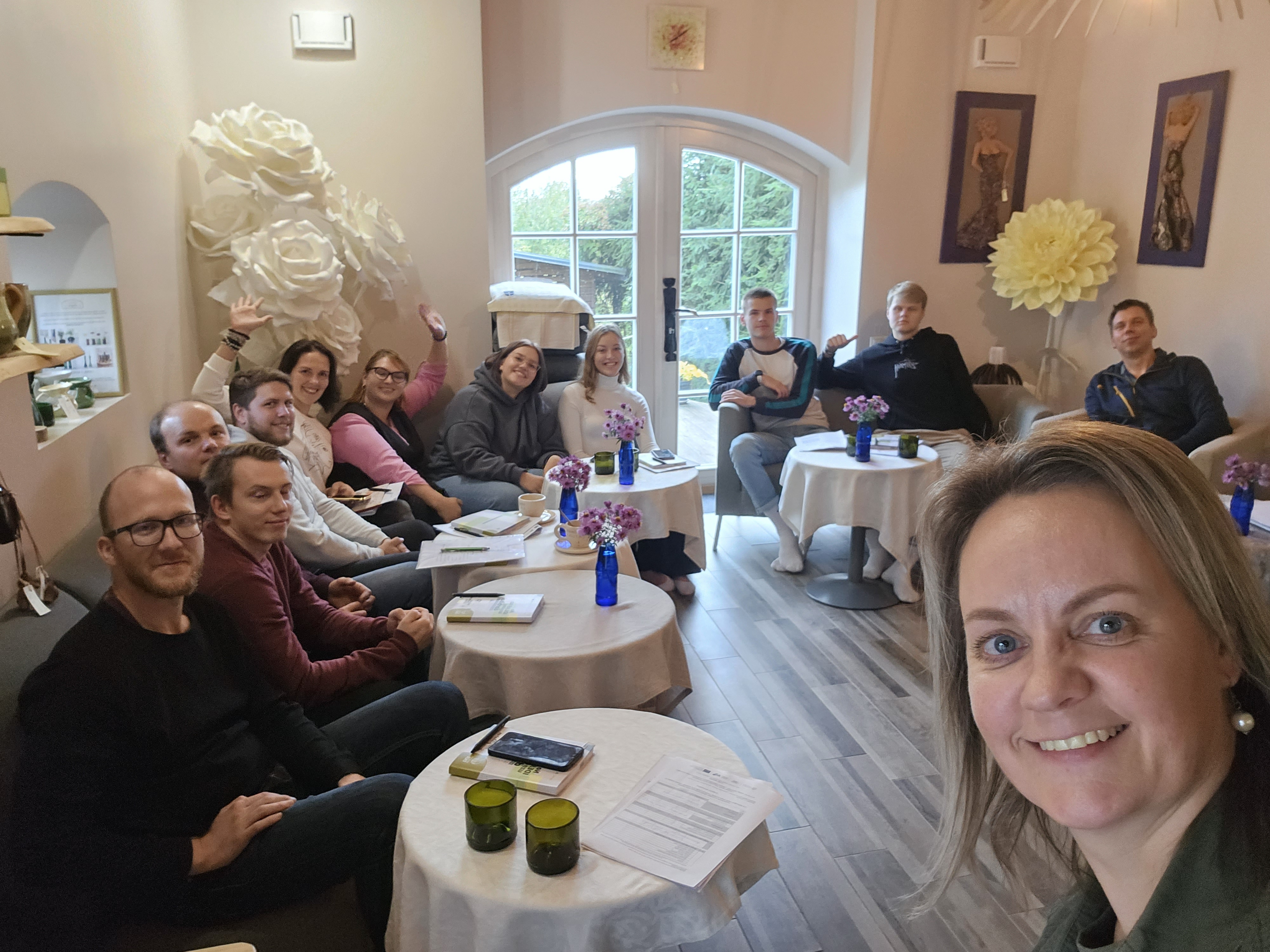 Mācības Preiļu birojā uzsākām 6. oktobrī ar informatīvo dienu un pieredzes apmaiņas braucienu. Pieredzes apmaiņā bijām pie trīs iepriekšējo gadu “Laukiem būt!” jauniešiem. Pirmā bija Inese Martinkus, kura jauniešus uzņēma Preiļu pludmales kafejnīcā “Pampūkas”. Uzzinājām, kā aizsācies Ineses uzņēmējdarbības stāts un kā radās “Pampūkas”. Jaunieši guva ieskatu par to, kāda bija sākotnējā iecere ar izbraukuma ēdināšanu un busiņu, kuru var novietot jebkurā vietā un tirgoties ar dažādu veidu pankūkām un kā nonākts līdz kafejnīcas atvēršanai vietā, kura sākotnēji nemaz nav bijusi tik apdzīvota kā šobrīd. Lieliska pieredze, brīnišķīgs un iedvesmojošs stāsts.