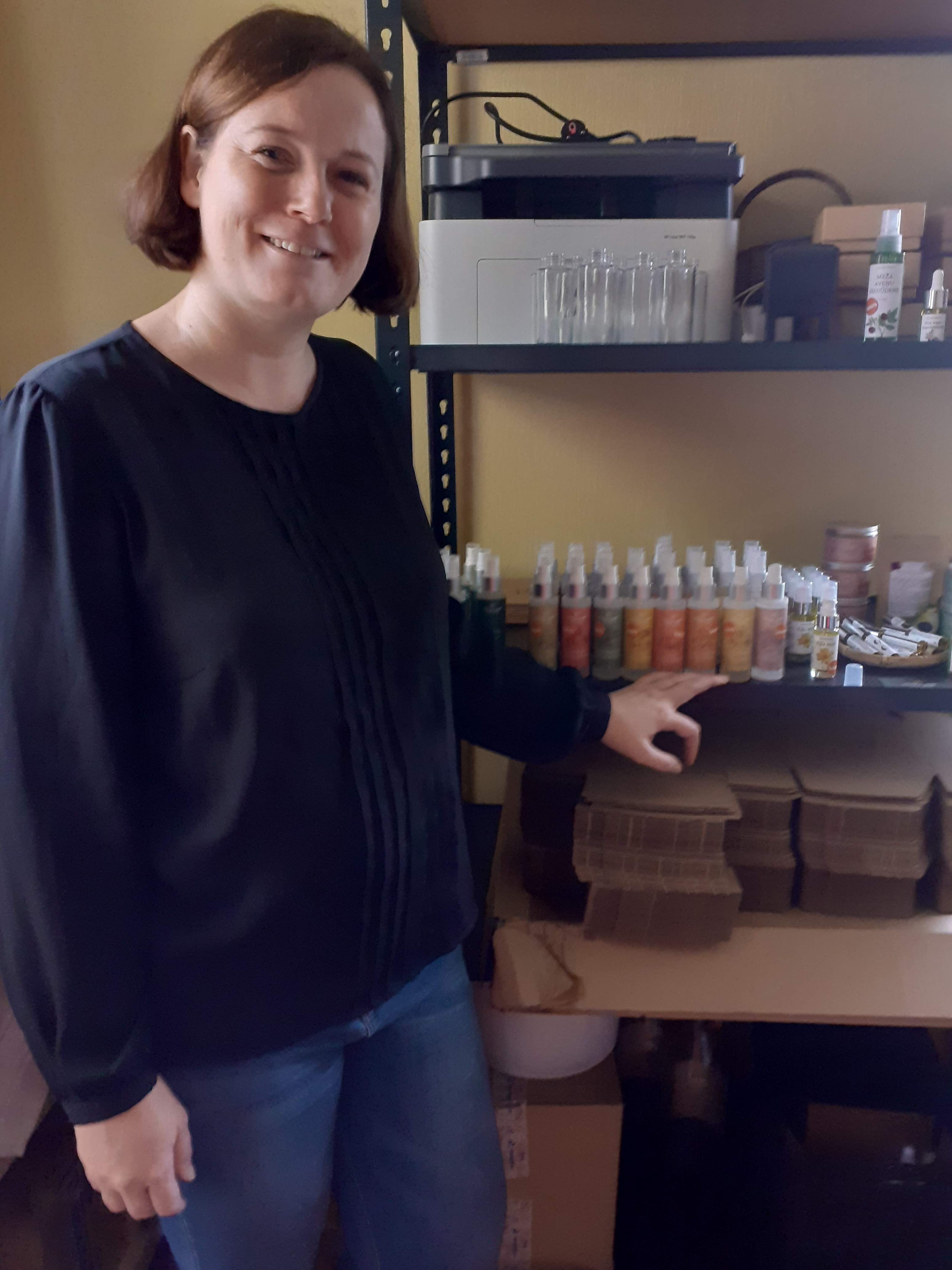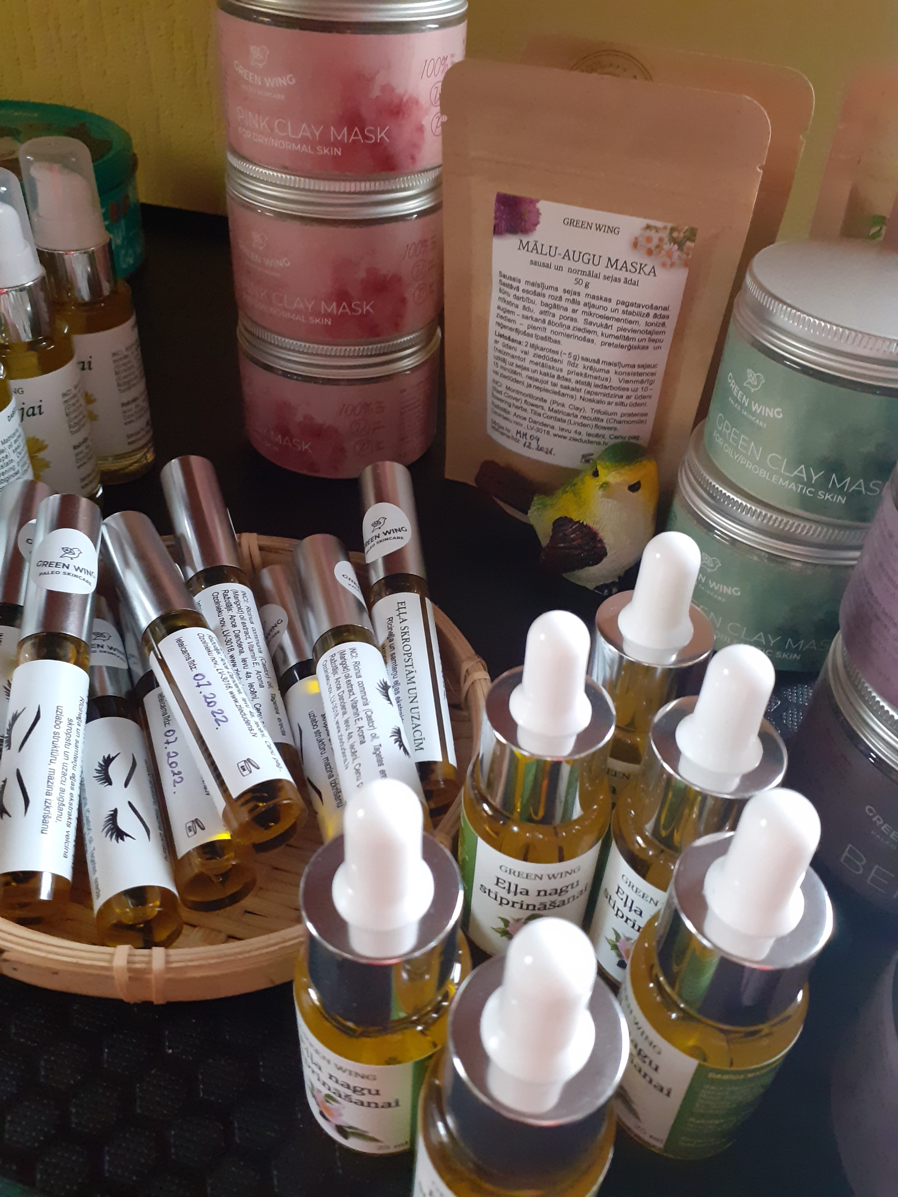 Tālāk dodamies pie Ances Dandenas, kura nodarbojas ar dabīgās kosmētikas ražošanu. No svaigi ievāktiem augiem un augļiem destilācijas procesā Ance iegūst ziedūdeņus. 2019. gadā  viņa veiksmīgi startējusi konkursā ”Laukiem būt!” un ir gandarīta par iegūto otro vietu kategorijā ”Uzņēmējdarbības ideja nelauksaimnieciskā nozarē”. Par iegūtajiem līdzekļiem ir iegādātas ražošanas iekārtas, izstrādāts jauns iepakojuma dizains un reģistrēta preču zīme “Green Wing Paleo Skincare”. Ances ražotie ziedūdeņi ir arī pamatprodukts citu kosmētikas līdzekļu ražošanā. Mums tiek dota iespēja testēt un iepazīt dažādos produktus, no kuriem vislielāko atsaucību guva vīgriezes ziedūdens. Piedāvājamo produktu klāstā ir eļļa sejas kopšanai, eļļa nagu nostiprināšanai, mālu-augu maskas un matu kopšanas līdzekļi. Īpaši aromātisks ir ķermeņa ogu skrubis, kura sastāvā ir avenes un upenes. Šos visus produktus var pasūtīt mājaslapā www.ziedūdeņi.lv, un Ance priecājas par katru jaunu pasūtījumu. Tas nozīmē , ka patērētājs tos ir novērtējis. Ance uzskata, ka pie mums augošie augi ir krietni  aromātiskāki un vielām bagātāki, jo dabas apstākļi pie mums ir skarbāki. Šo produktu autore ir gandarīta par darbu, ko dara, un klātesošos aicina ieskatīties sev apkārt un ieraudzīt iespējas, lai darītu to, kas sirdij tuvs.