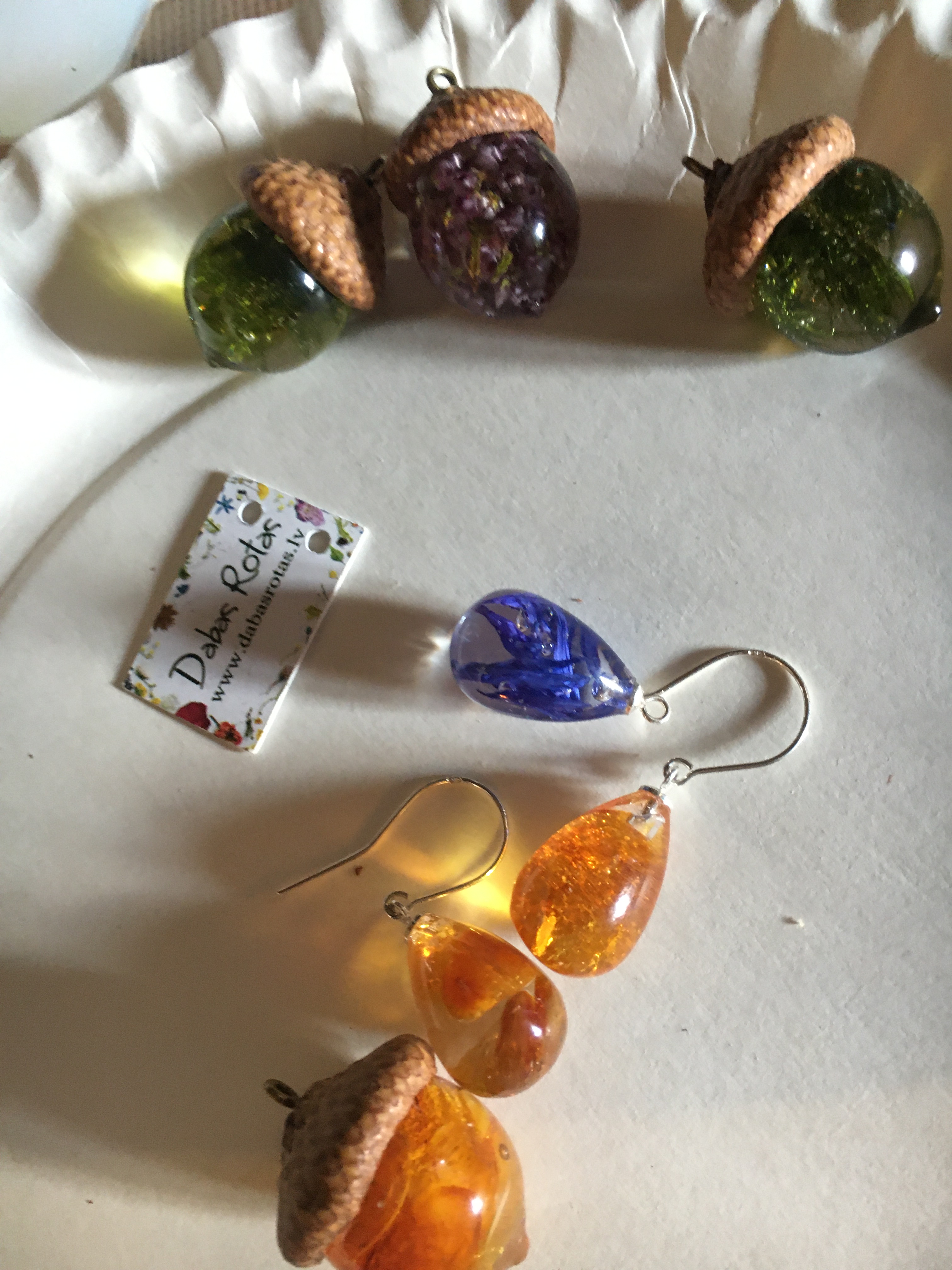 No ļoti piezemētas lietas, ja tā var nosaukt iepazīto galdniecību, dodamies turpat uz blakus pagastu pie rotu mākslinieces. Ciemojamies Valkas novada Kārķu pagastā pie amatnieces Danas Purviņas. Viņa gan sevi par kārķēnieti var saukt tikai no šī gada, kad ar ģimeni iegādājās mājas un pārcēlās uz dzīvi “Dadzīšos”, bet savu zīmolu “DabasRotas” viņa jau izveidoja agrāk un tagad veiksmīgi turpina iesākto. Dana stāsta par to, kā radusies ideja veidot rotas, kāpēc tieši zīles formā un kā nonākusi līdz tam, ka izdevies atrast pareizās izejvielas un rezultāts beidzot bija kā plānots, skaista caurspīdīga rota –ozolzīles formā ar iestrādātu kaltētu augu tajā un īstu sarkanā ozola zīles cepurīti. Dana atzīst, ka viņai veicas ļoti labi un ir daudz jāstrādā, lai izpildītu visus pasūtījumus, jo tirdzniecība notiek ar interneta starpniecību, rotas ir ļoti pieprasītas un, kā mēs noskaidrojām, ceļo pa visu pasauli, tālākais ceļš, kurp zīle sūtīta, ir bijis uz Jaunzēlandi.