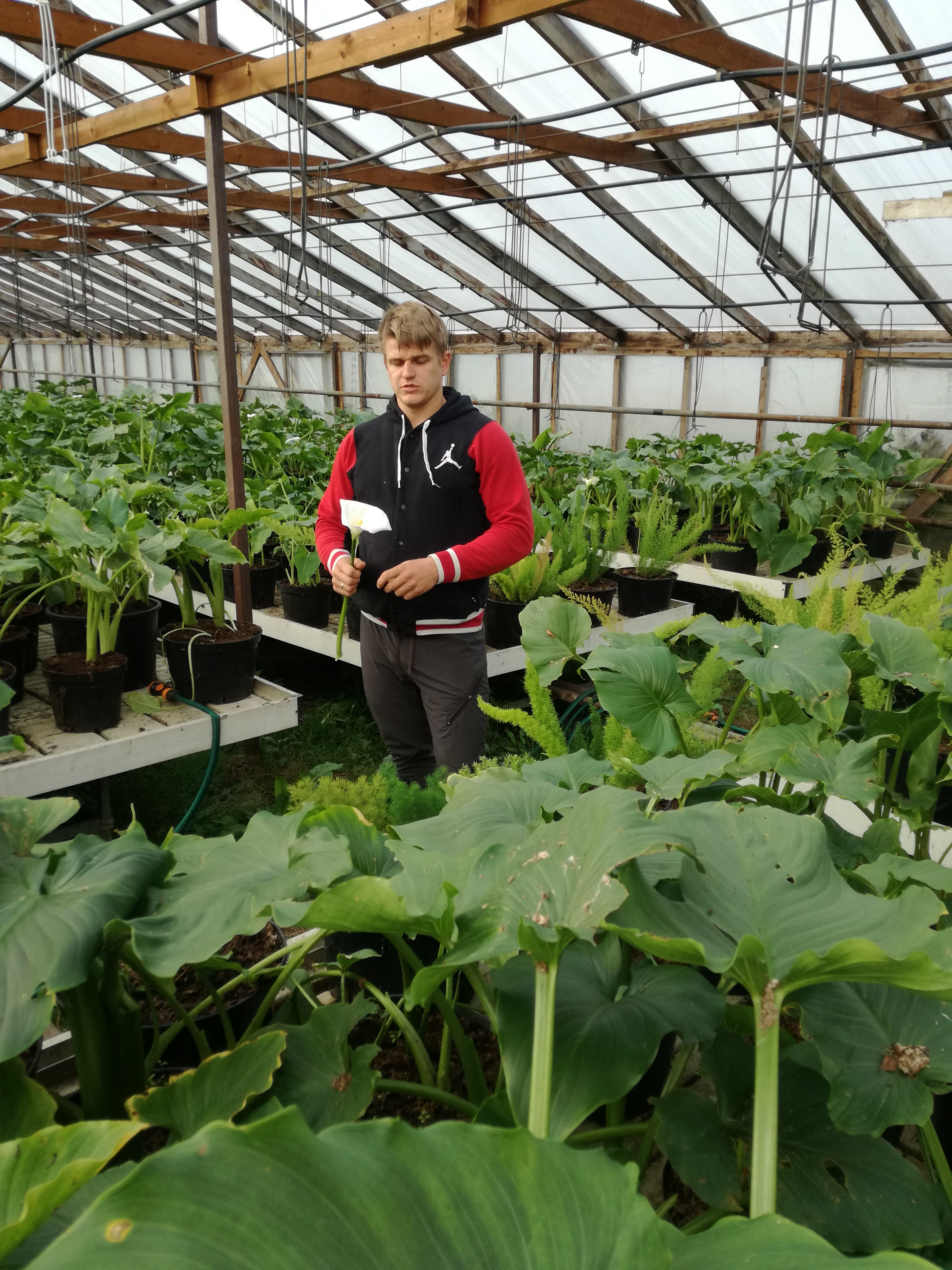 Jautājot pašam saimniekam, kuri ziedi ir vismīļākie, viņš smaida un tā īsti neatbild, jo saka, ka patīkot visi. Katru gadu Jānis arī cenšas uz saimniecību atvest kādu jaunumu no citas zemes. Mūsu viesošanās reizē siltumnīcā skaisti uzziedējis rozā krūmiņš, kurš vests no Itālijas, un olīvkoks.
